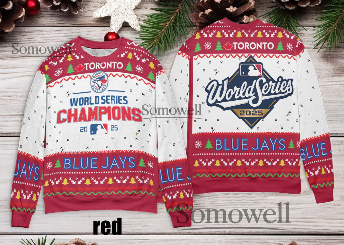 Toronto Blue Jays World Series Champions 2025 Ugly Christmas Sweater Holiday Baseball Fans Edition Multi Color Edition