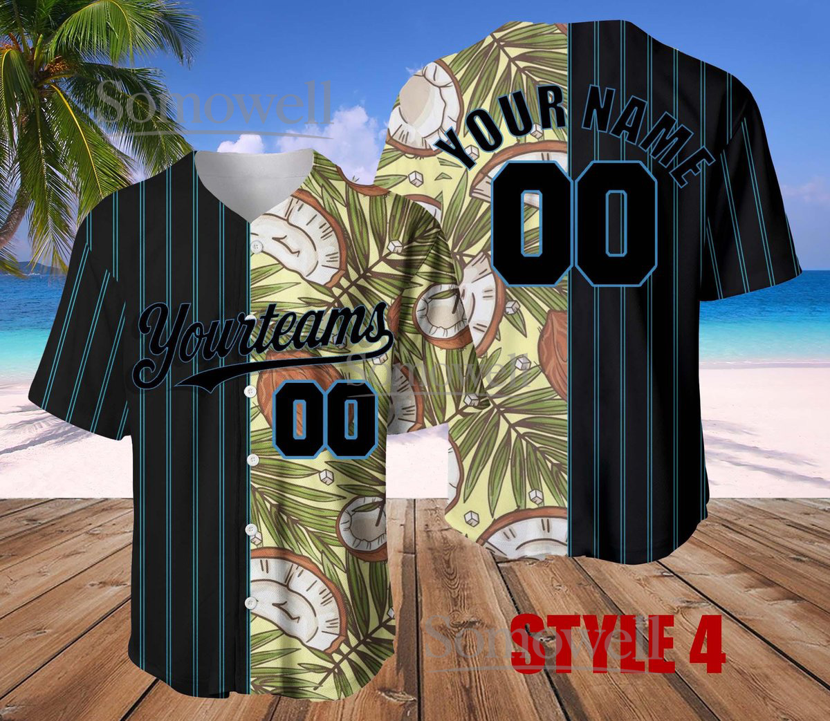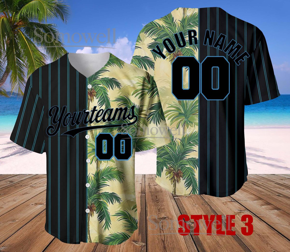 Tropical Palm Tree Hawaiian Baseball Jersey Blue Custom Team Name Number Summer Beach Shirt