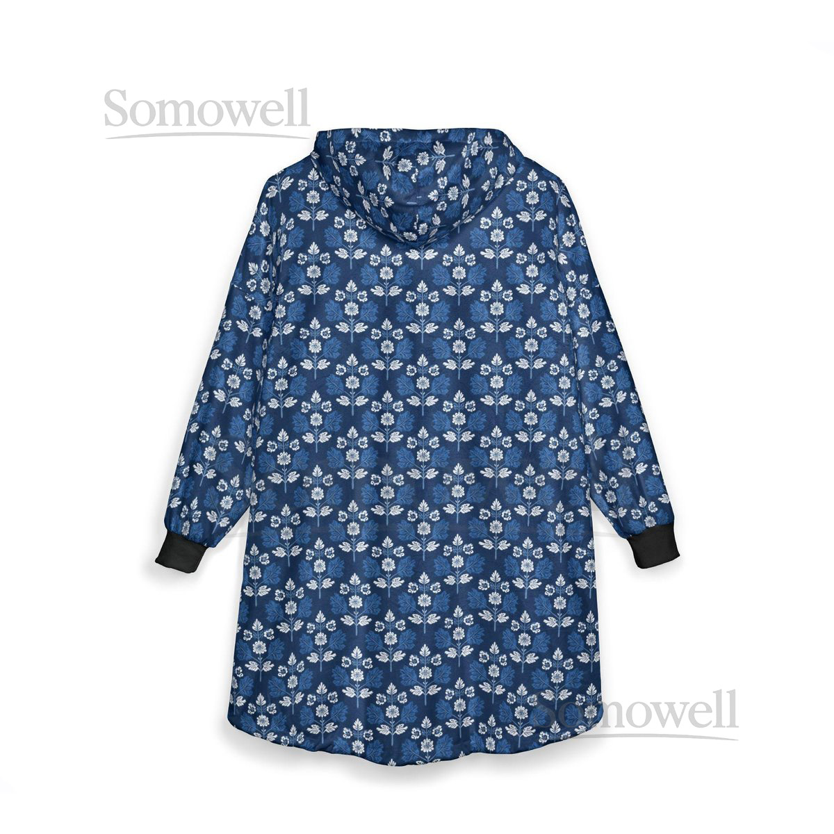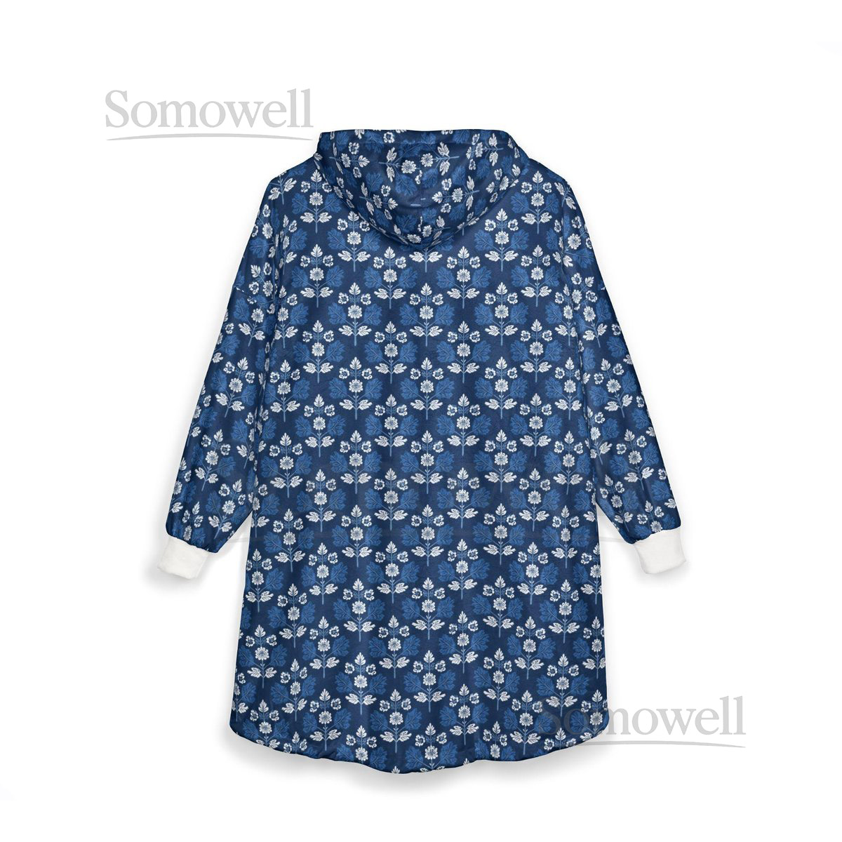 Unisex Hooded Blanket Oversized Wearable Hoodie Blanket One Size Fits All Outdoor Softball Snuggly Hoodie Cloak Blue Floral Print_82