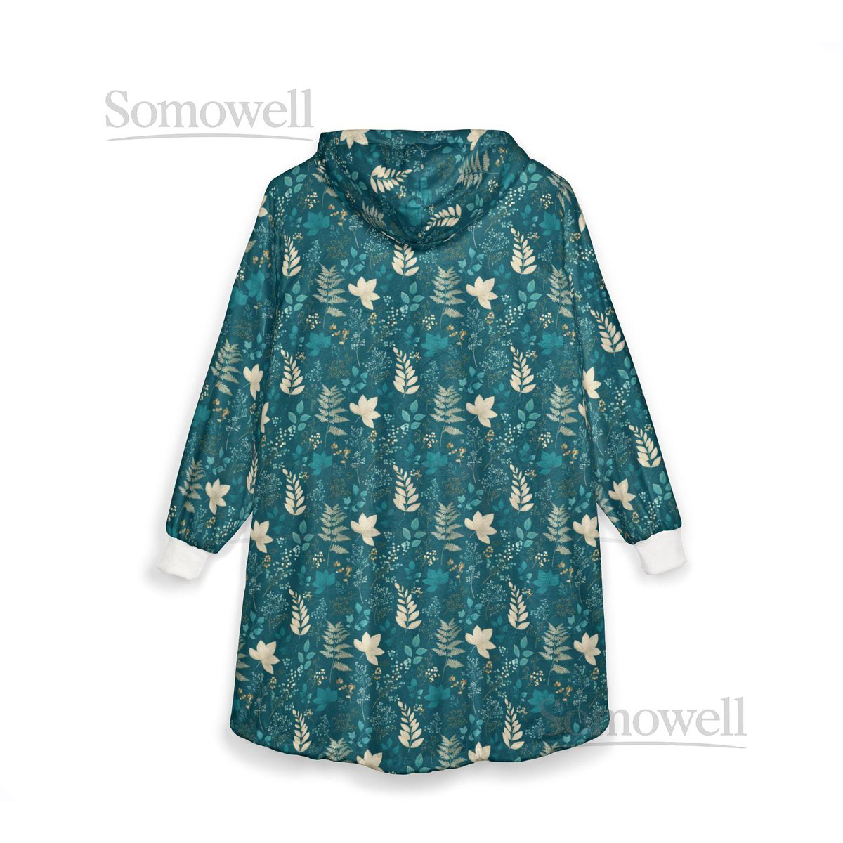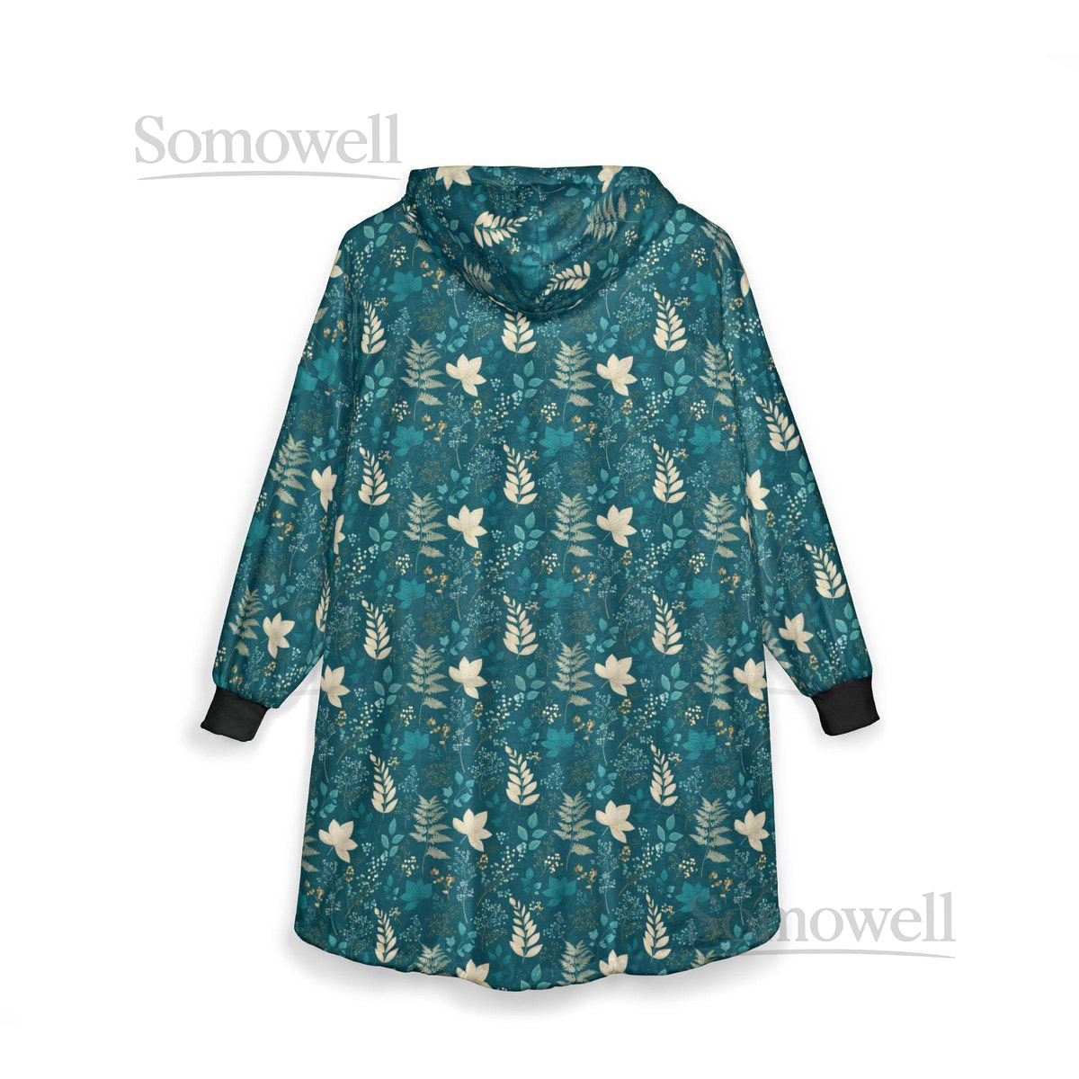 Unisex Hooded Blanket Oversized Wearable Hoodie Blanket One Size Fits All Outdoor Softball Snuggly Hoodie Cloak Teal Green Floral_98