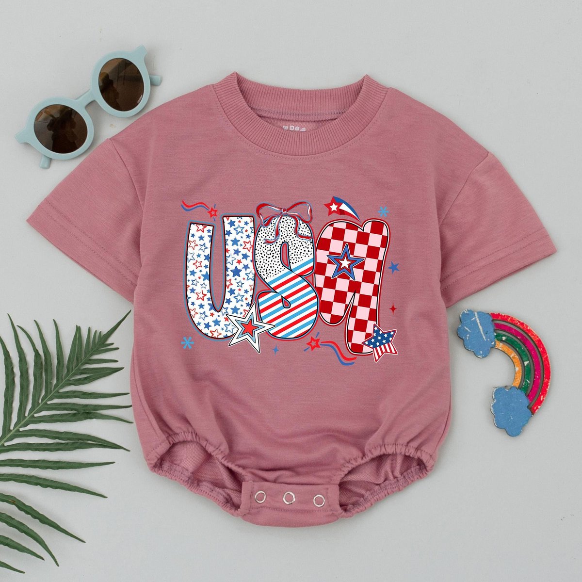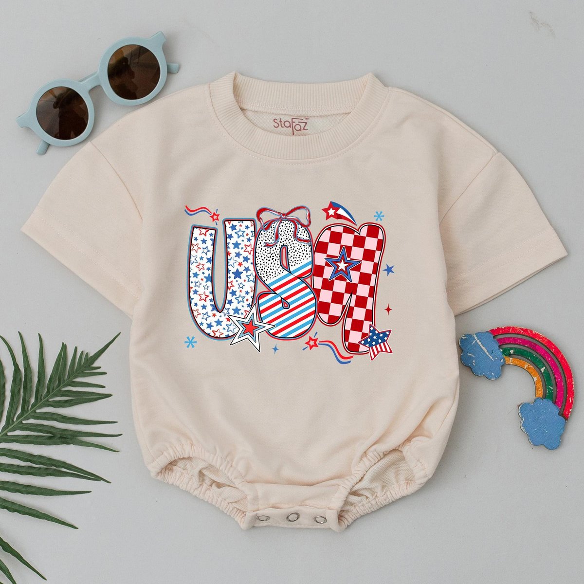 USA Baby Romper 4th of July Patriotic Infant Bodysuit Red White Blue Baby Outfit Independence Day Gi