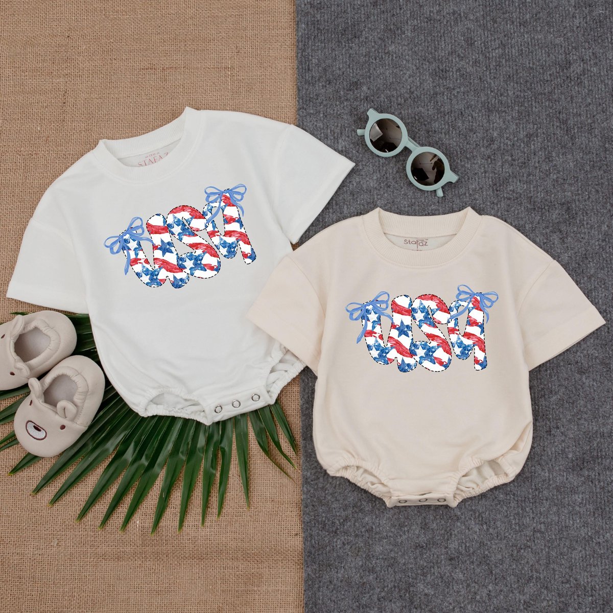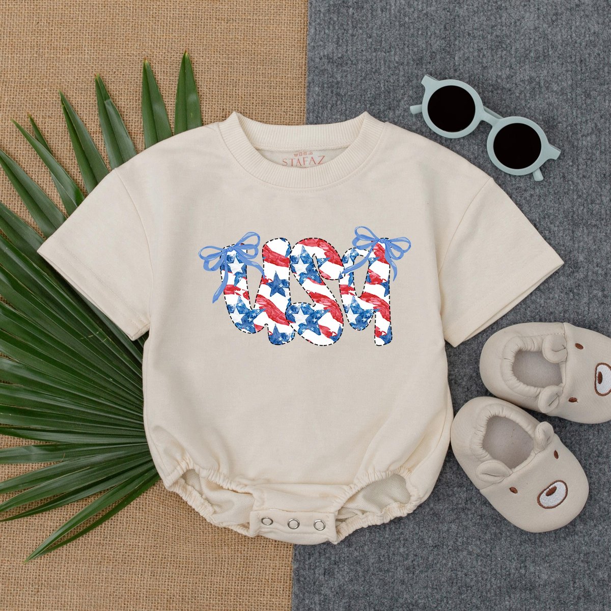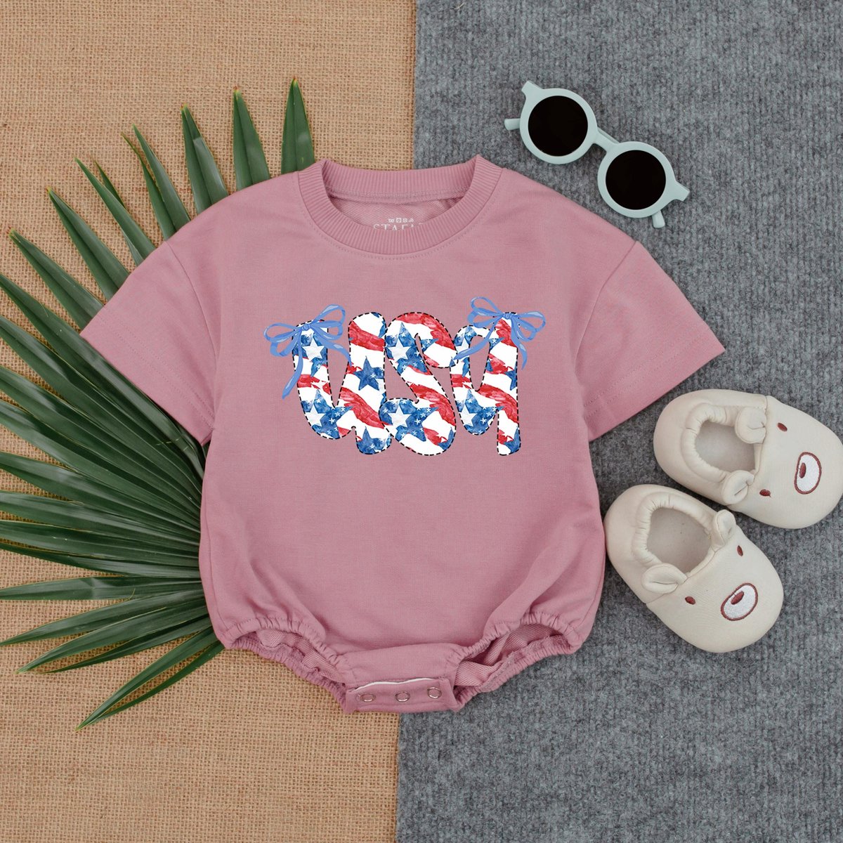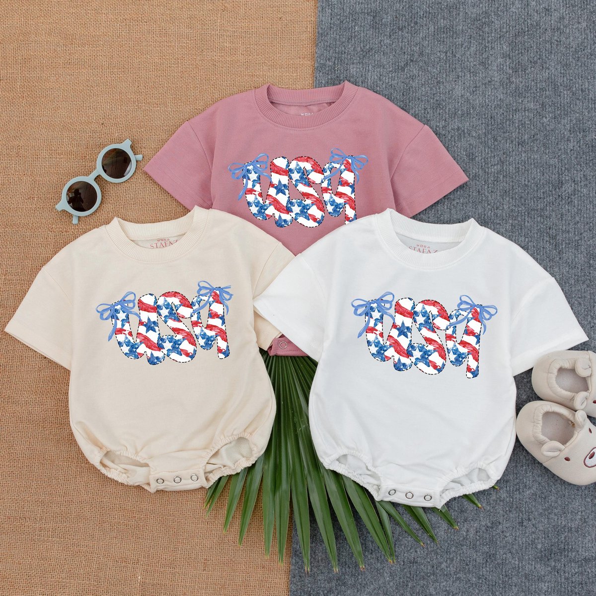 USA Flower Baby Girl Romper Fourth Of July Bubble Romper Patriotic Baby Outfit Summer T shirt Romper 430