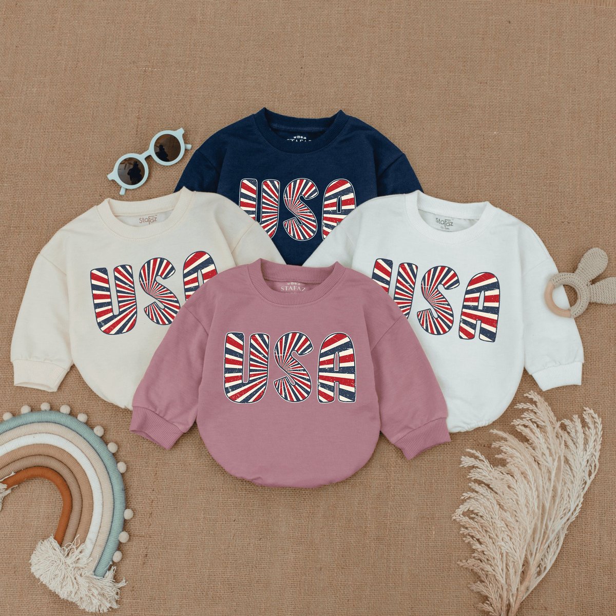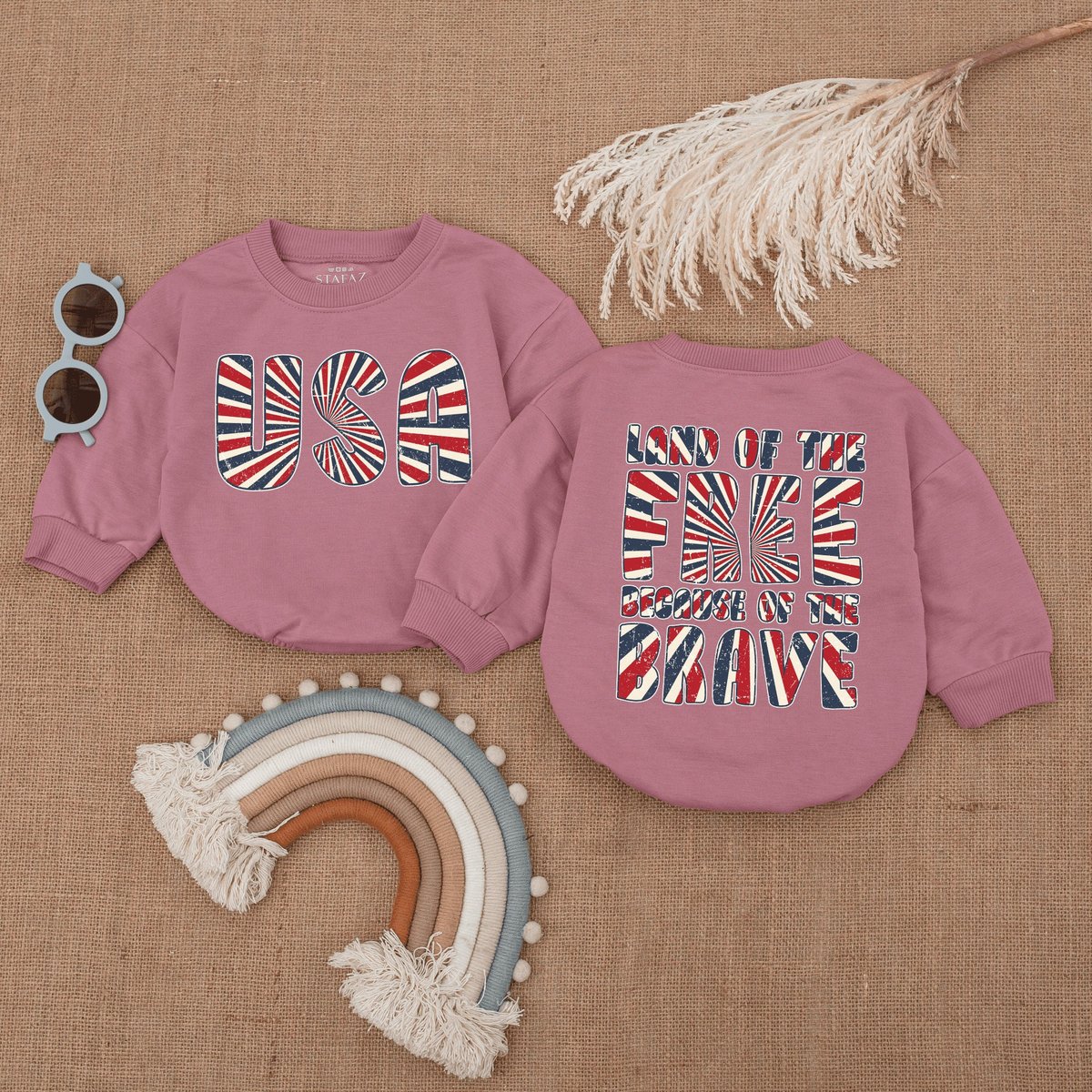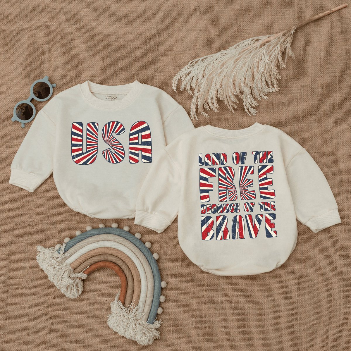 USA Land of the Free Because of the Brave Romper Retro Patriotic Bodysuit Cute Fourth of July Baby a 171