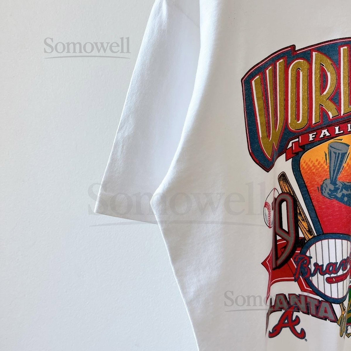 The Vintage 1990s Atlanta Braves vs Toronto Blue Jays MLB t-shirt XL_965 is more than just merchandise; it’s a piece of the Gachiakuta narrative. It celebrates the bonds formed in adversity and the unyielding will to survive and thrive, no matter the odds.