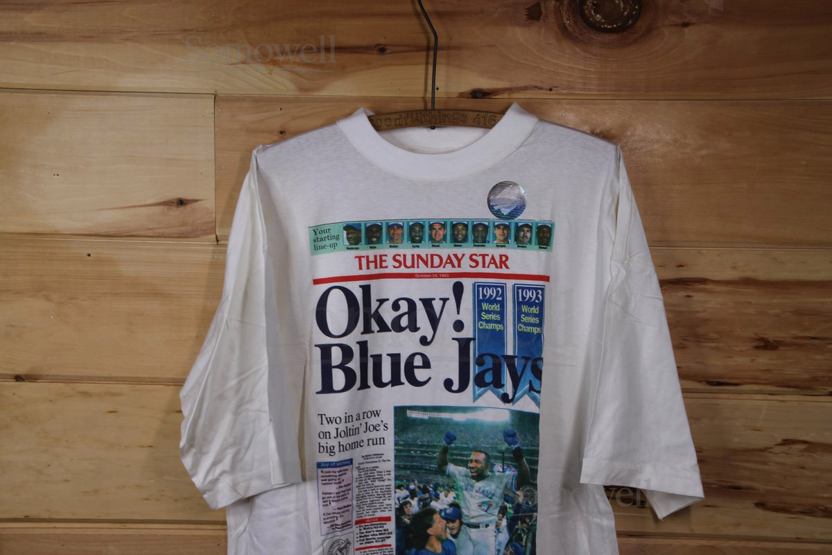 Vintage 1993 Toronto Blue Jays World Series Champions MLB Baseball White Deadstock T-Shirt Adult Size XXL_994