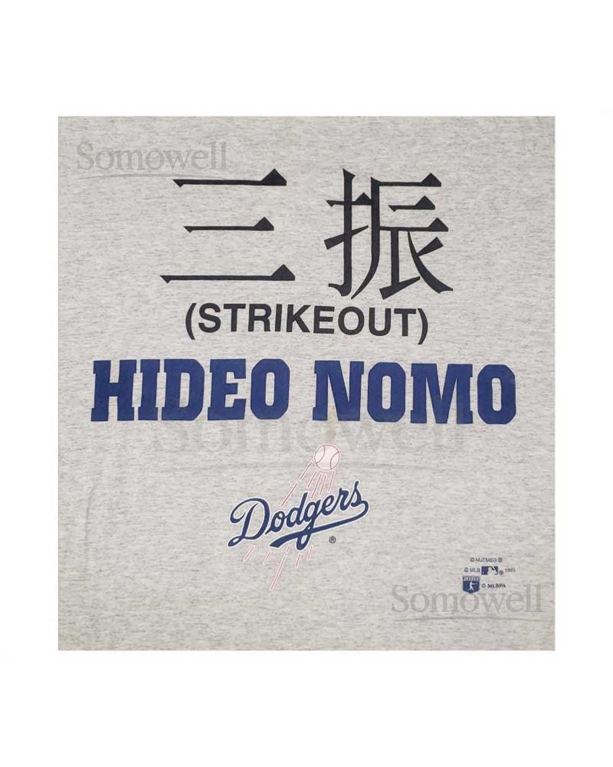 Vintage 1995 L.A. Dodgers Hideo Nomo MLB Baseball T-Shirt Gray Single Stitch Shirt XL_997