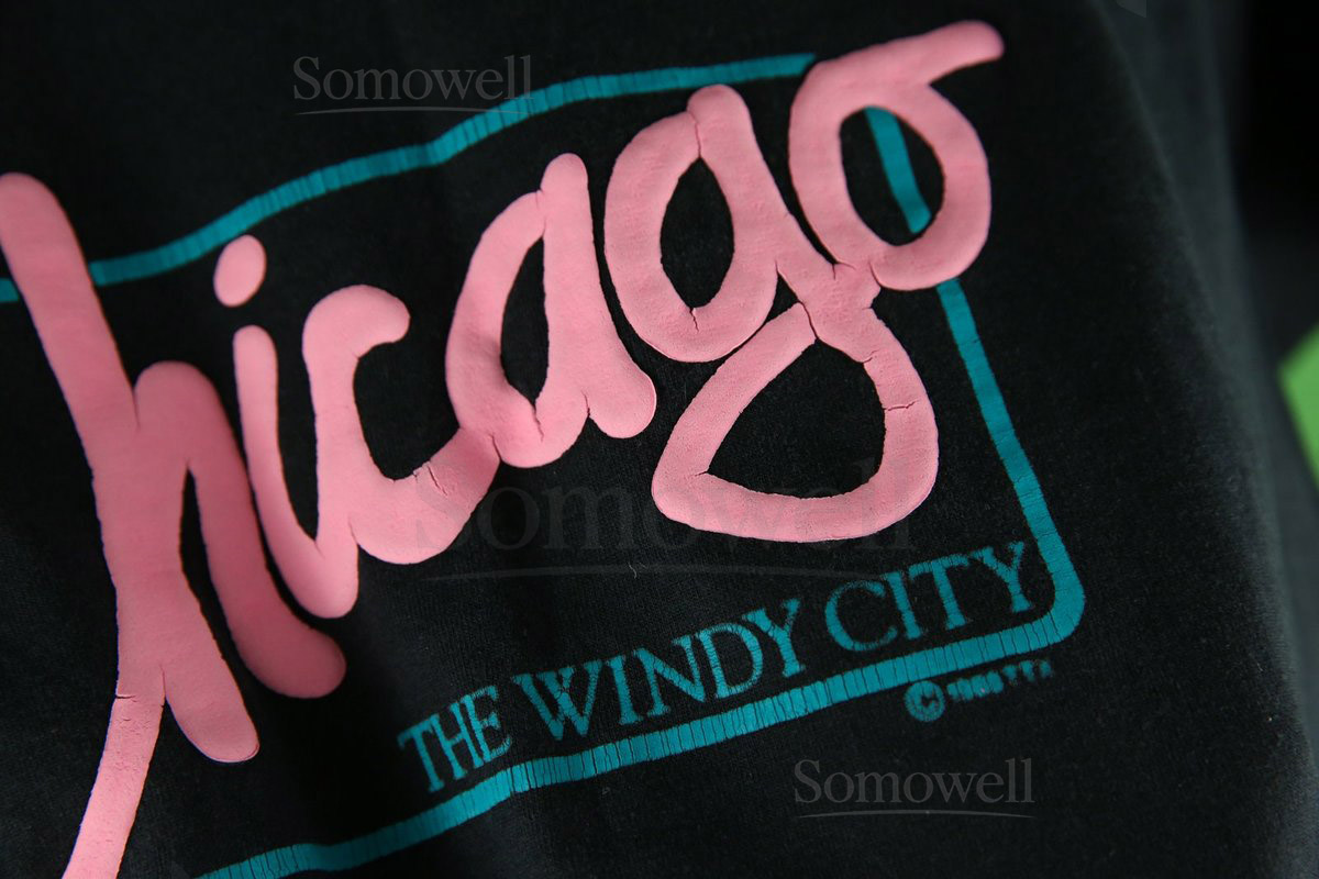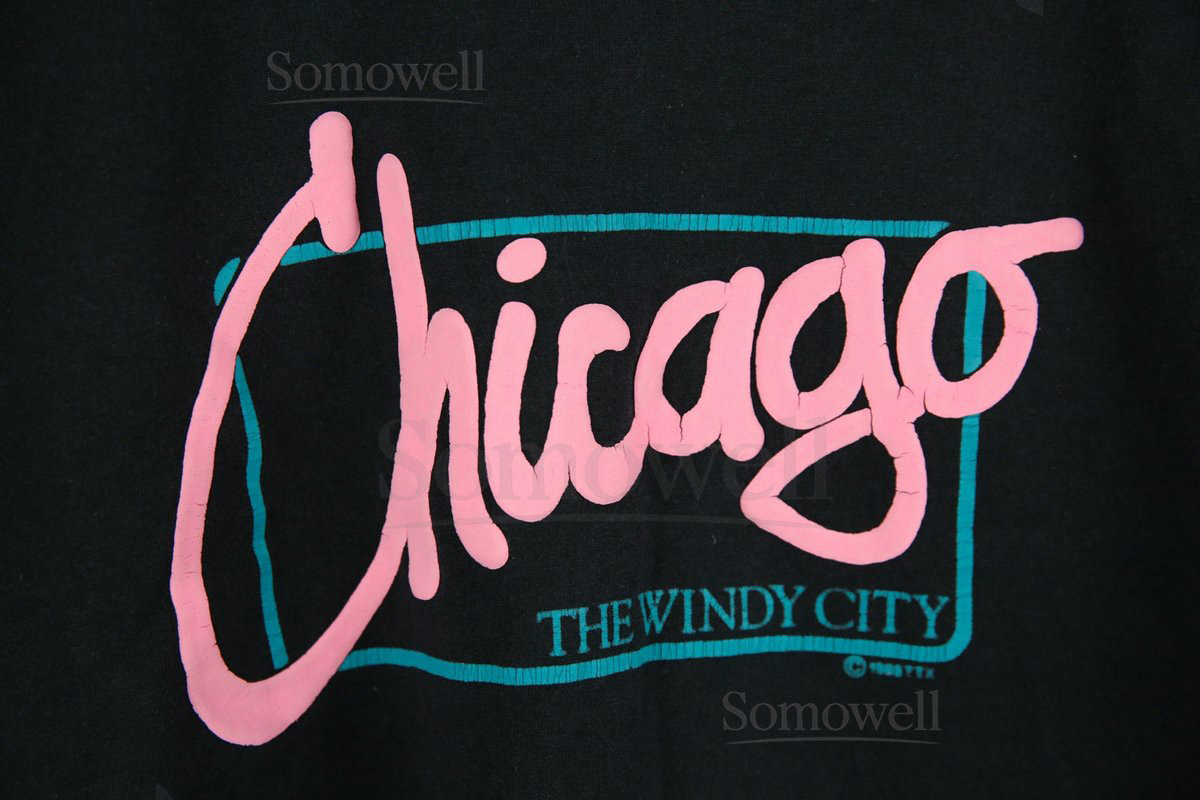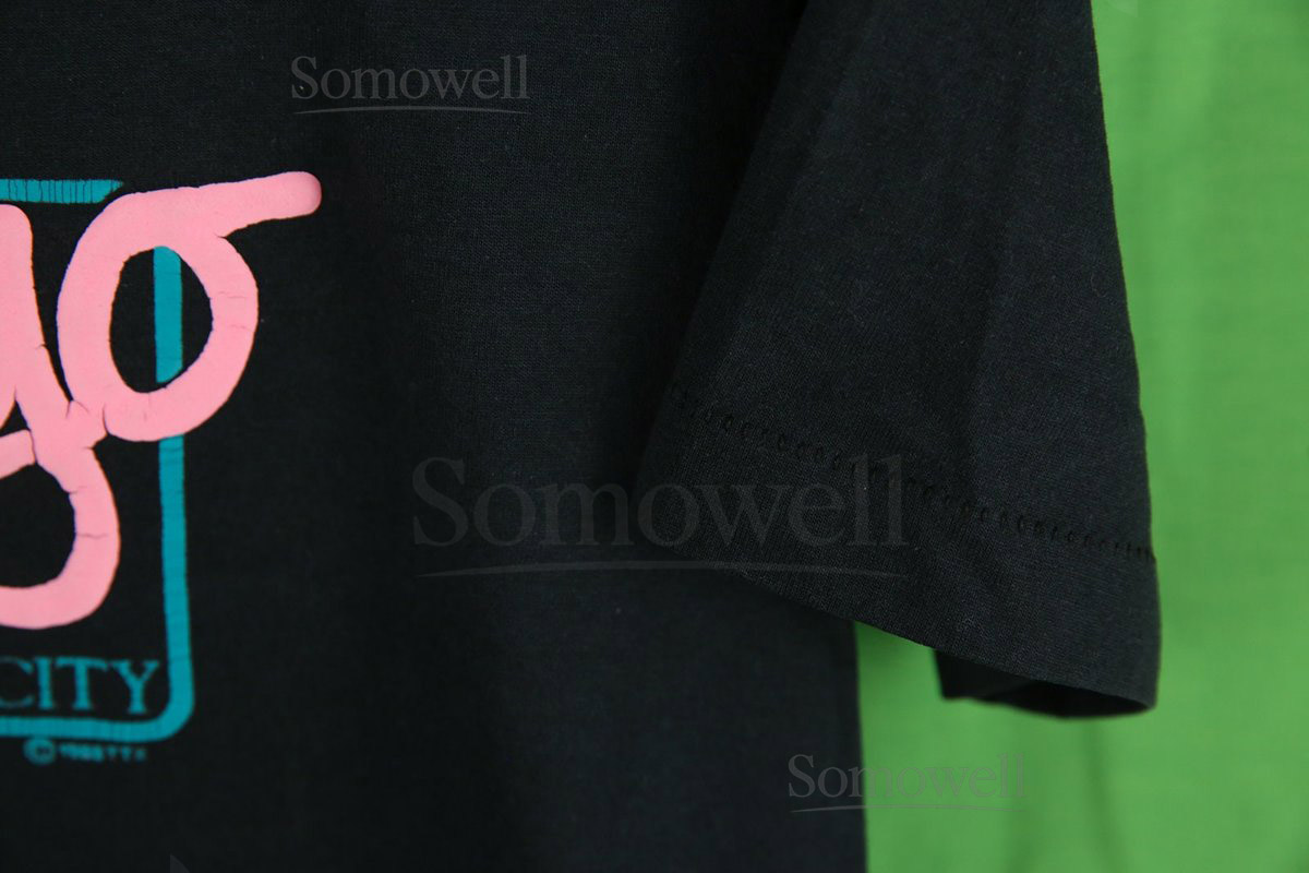 Vintage 80s Chicago Souvenir T Shirt Large Screen Stars Best Made in USA Black Illinois Single Stitch Neon The Windy City Bulls White Sox_417