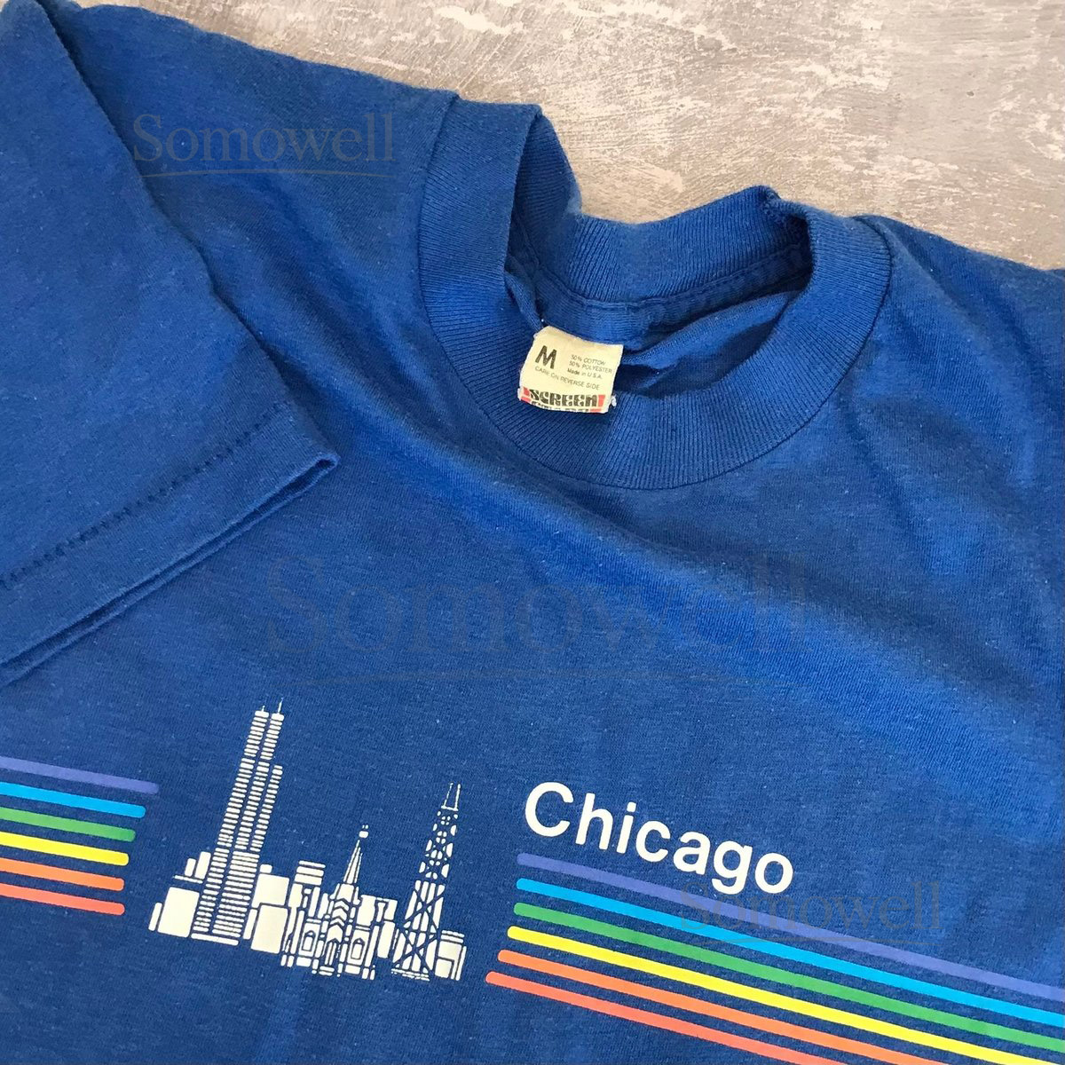 Vintage 80s Chicago T-Shirt Rainbow Skyline Travel Tee_418