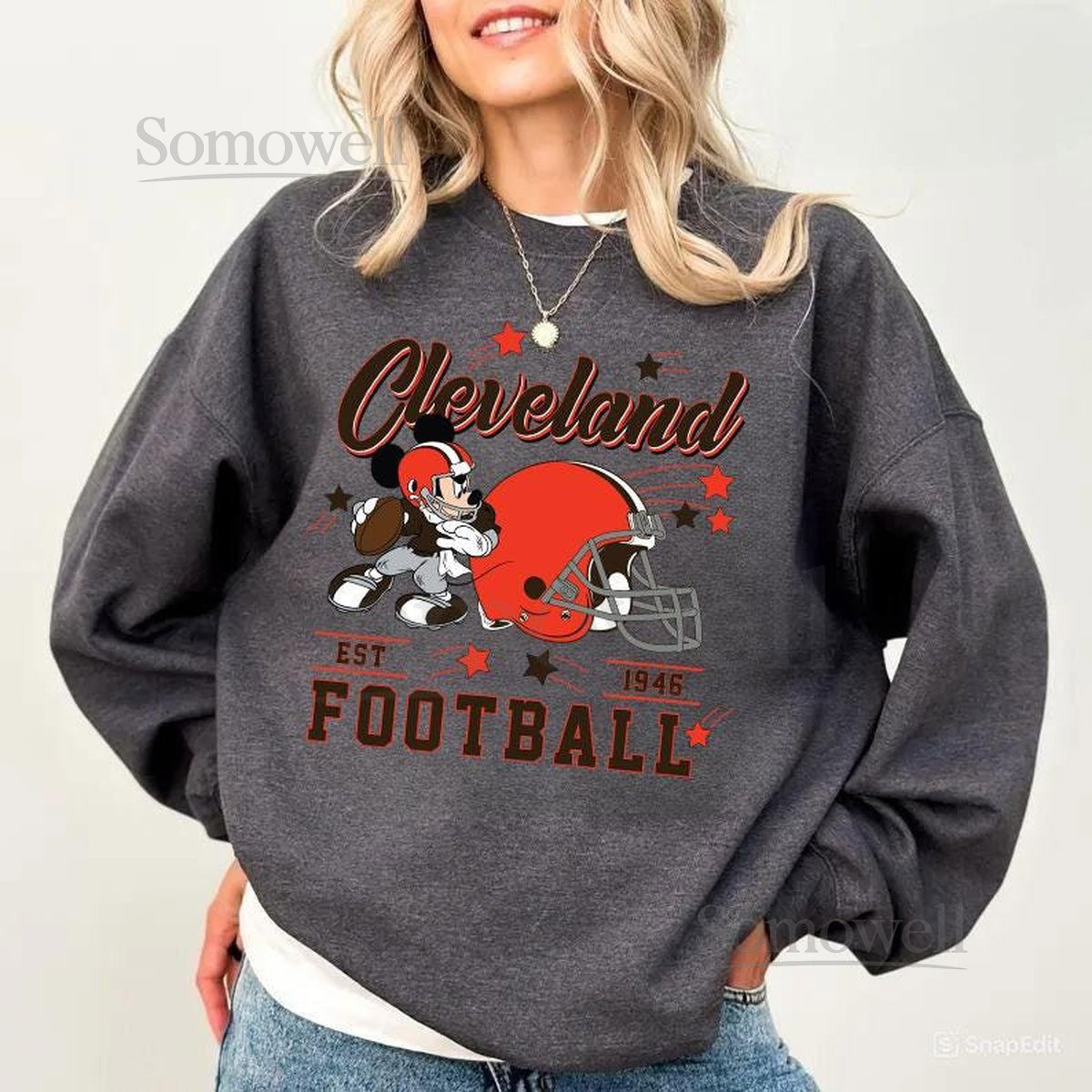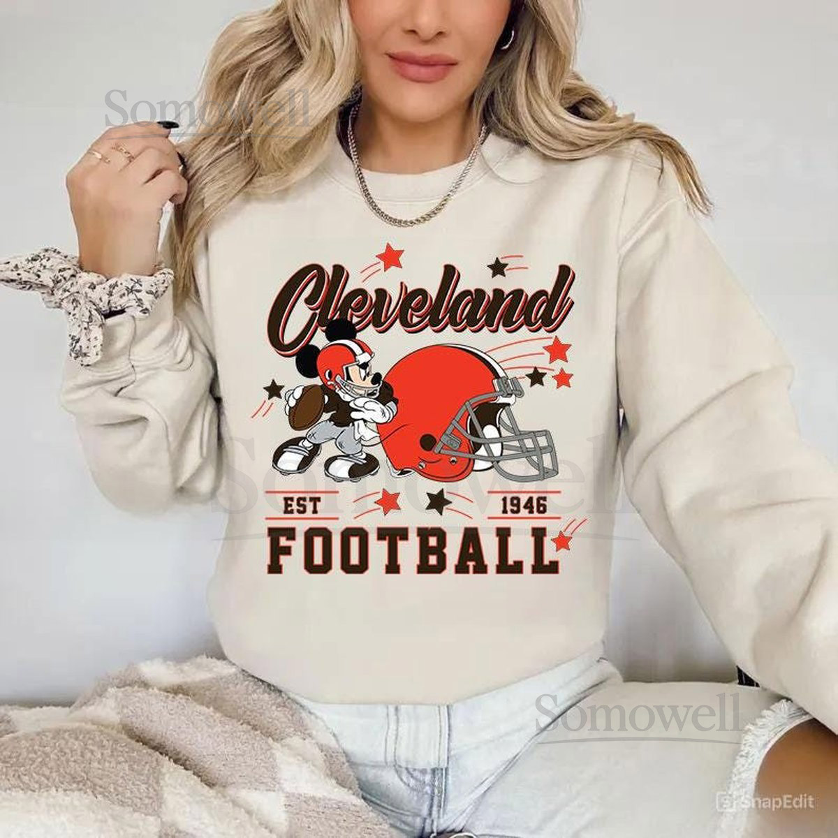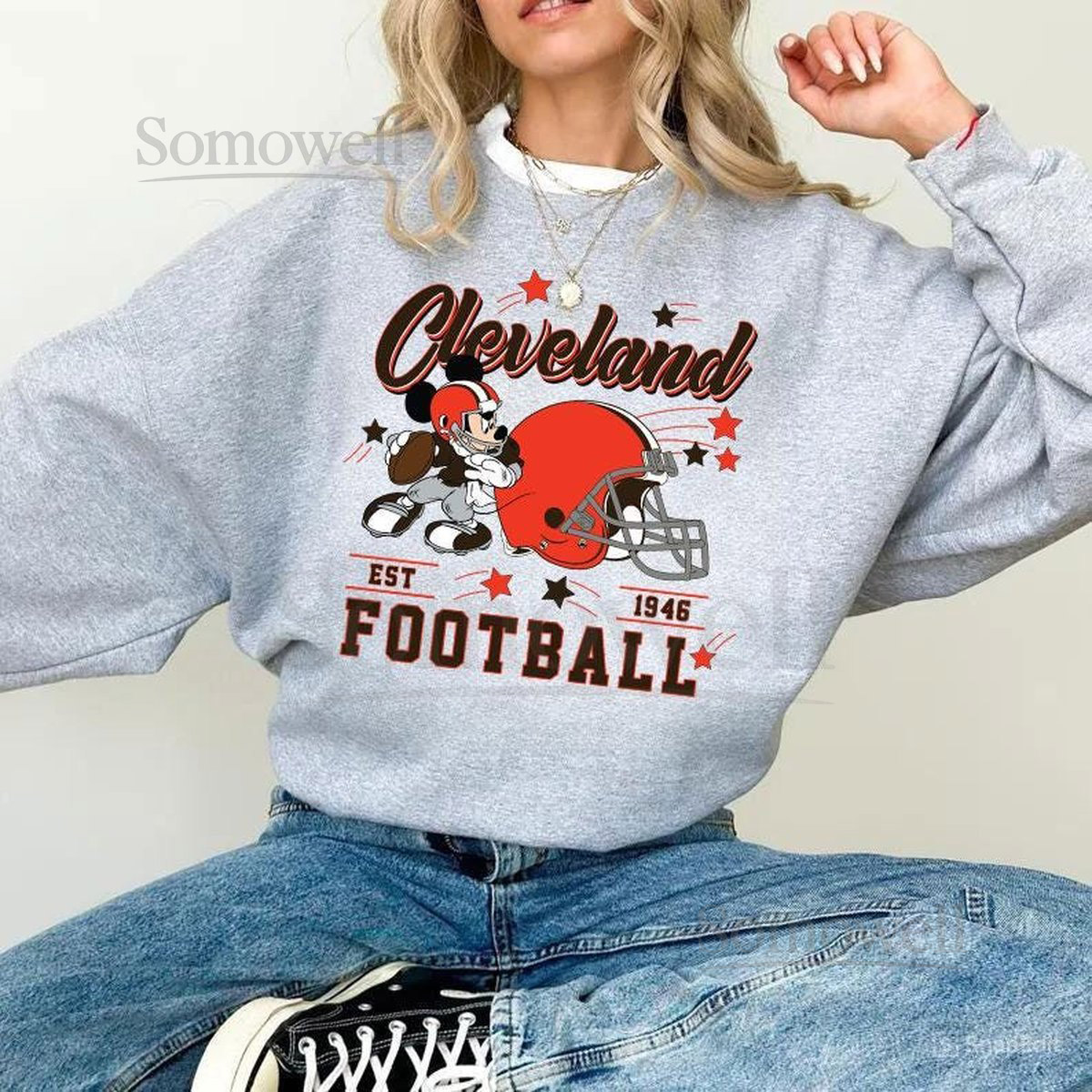 Vintage Cleveland Football Sweatshirt Retro Cartoon Graphic Pullover 90s Style Sports Fan Sweater Unisex Cozyt Crewneck Football shirt_29
