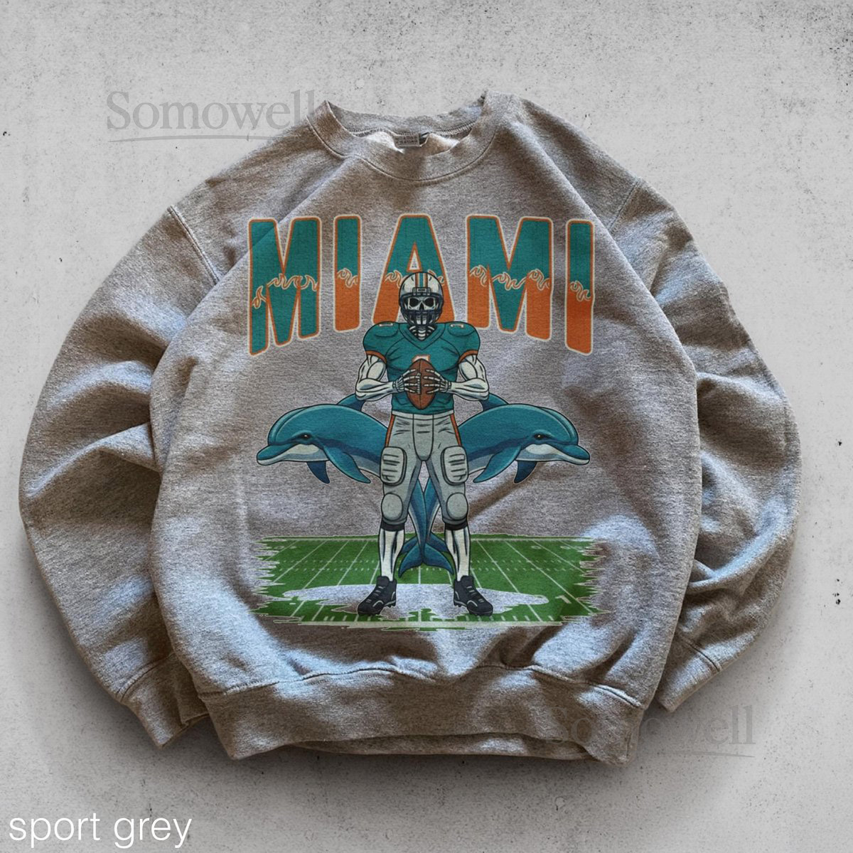 Vintage Miami Football Sweatshirt Retro Dolphins 90s Crewneck Old School Fan Pullover_703