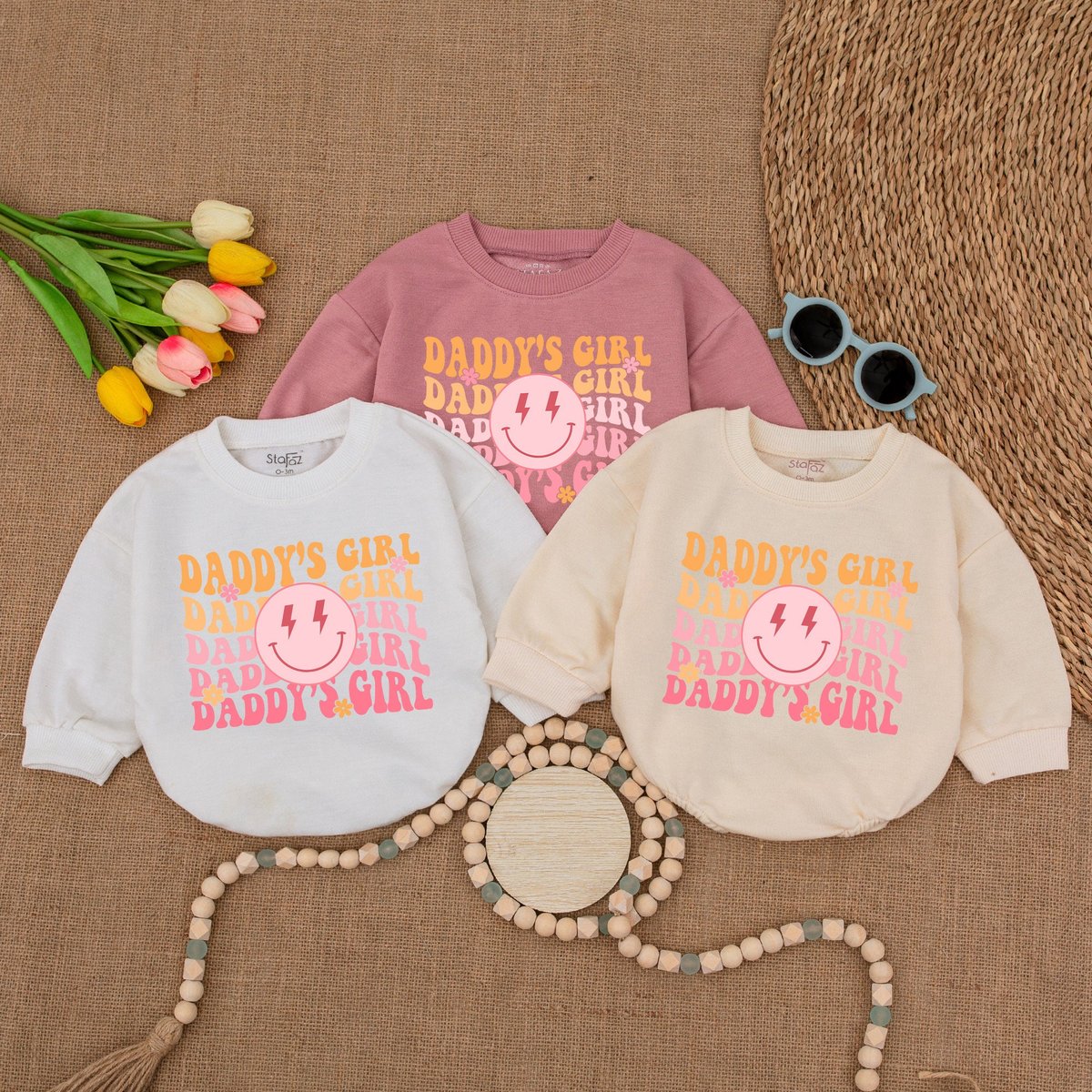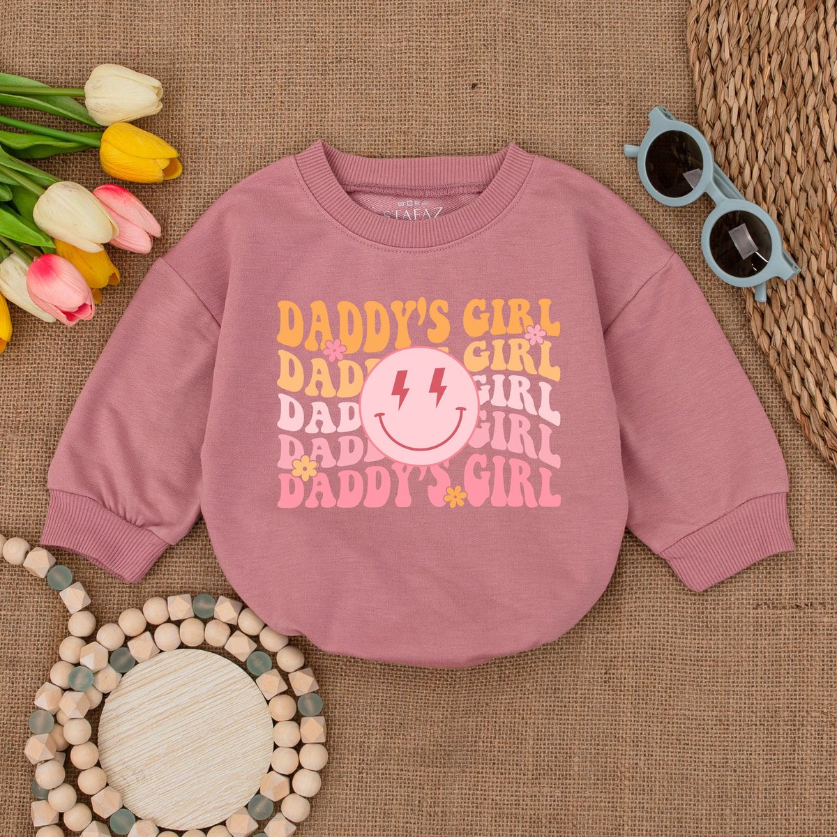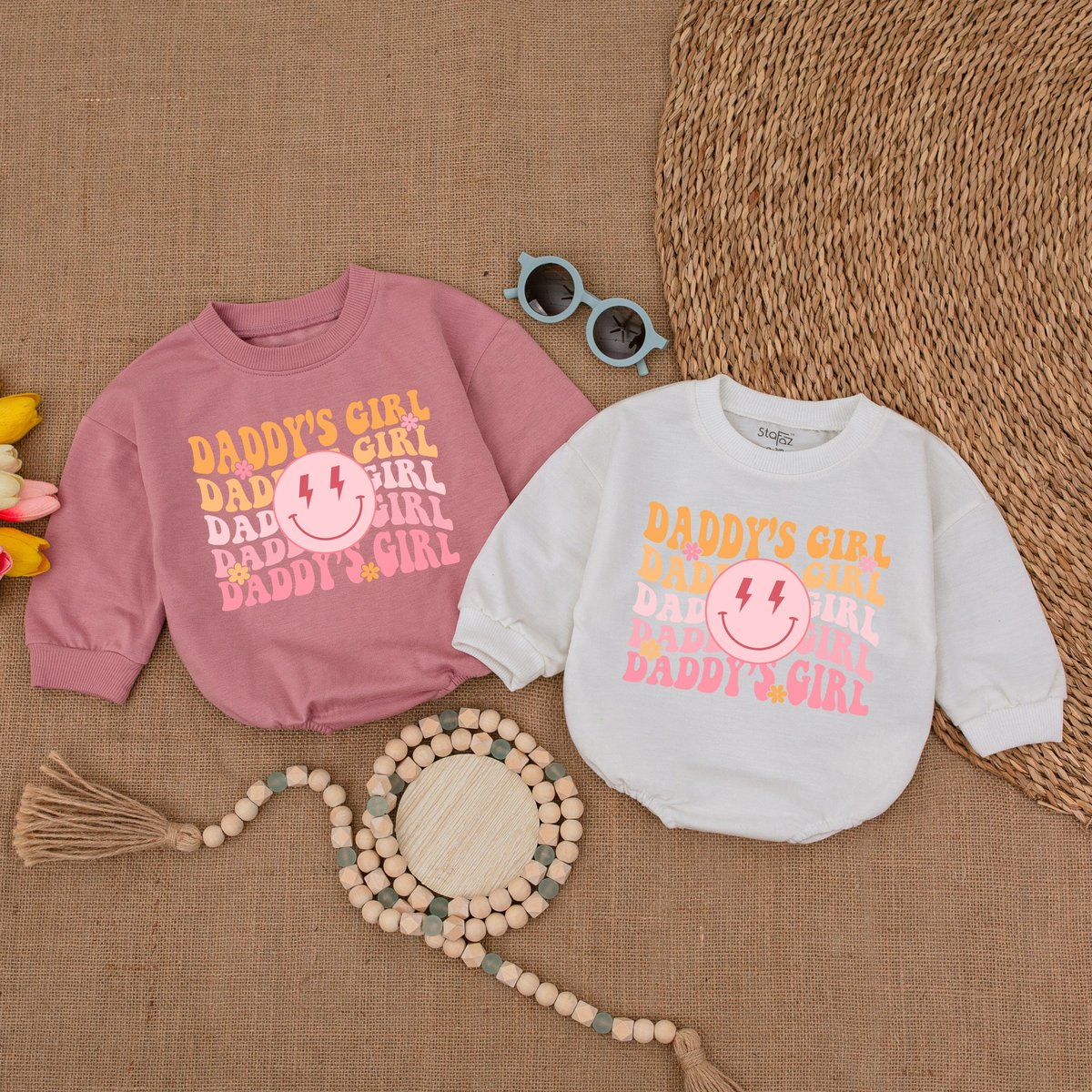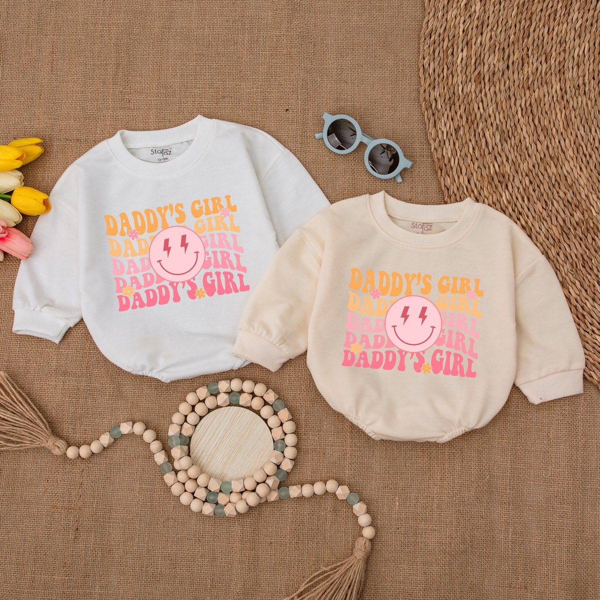 Wavy Daddy’s Girl Romper Smile Face Bodysuit Daddy’s Little Angel Bubble Romper Cute Daughter Outf 172