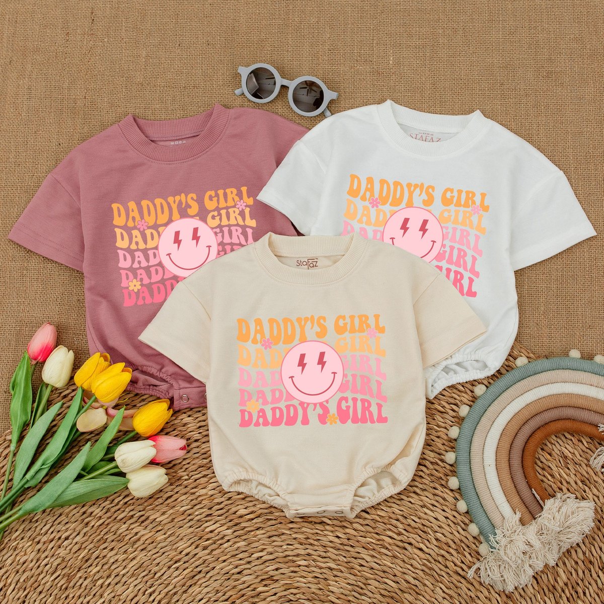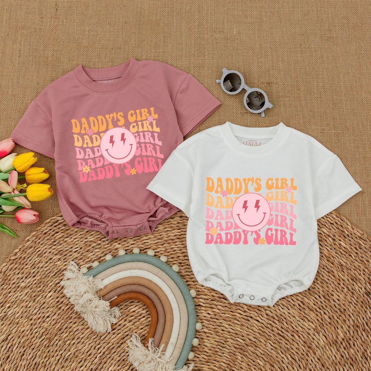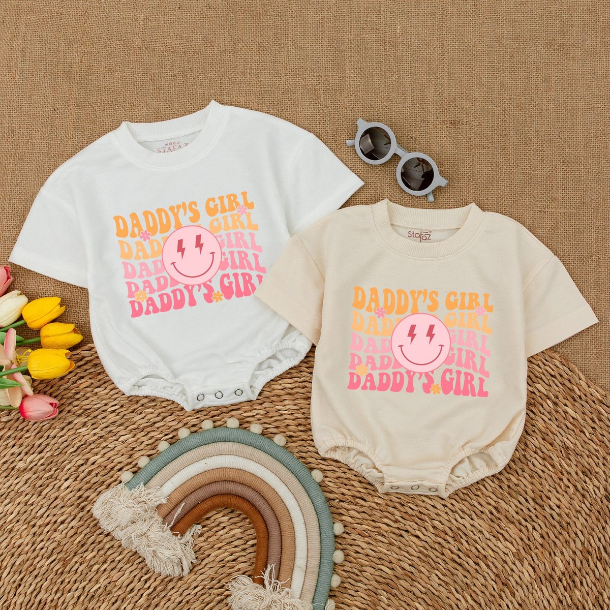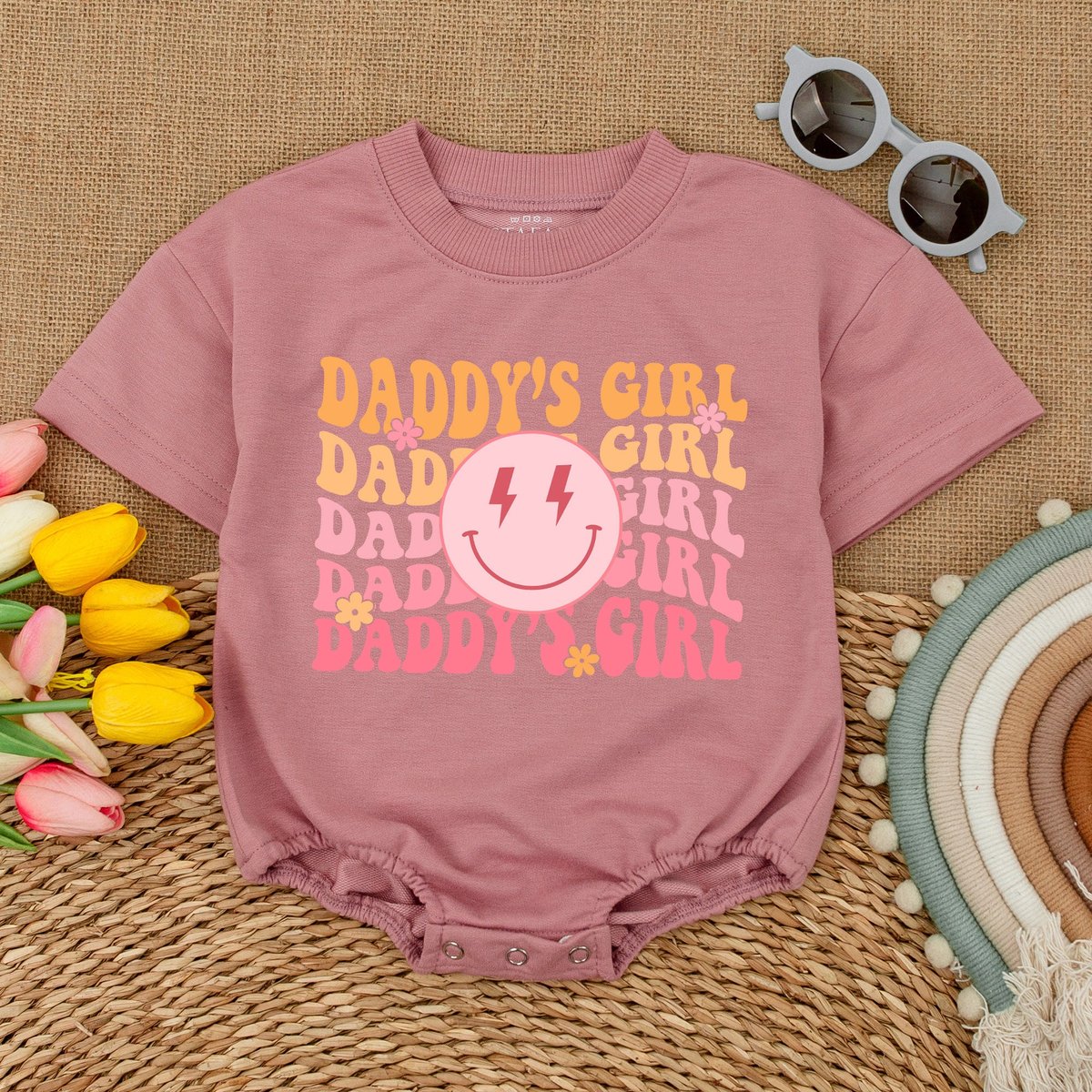 Wavy Daddy’s Girl Romper Smile Face Bodysuit Daddy’s Little Angel Bubble Romper Father’s Day Outf 172
