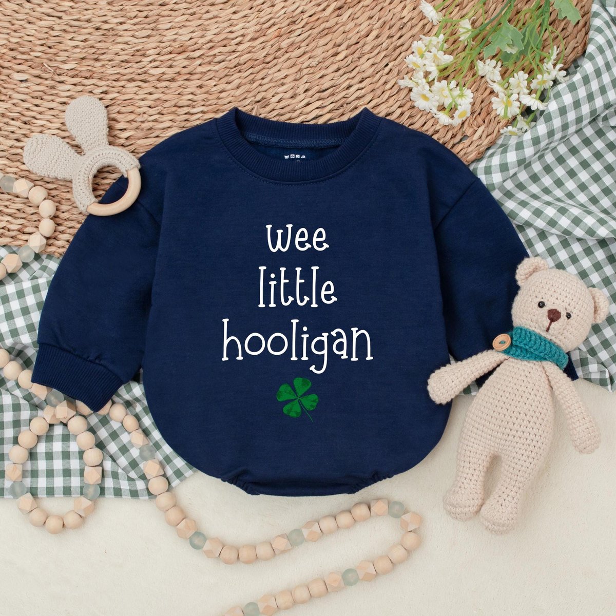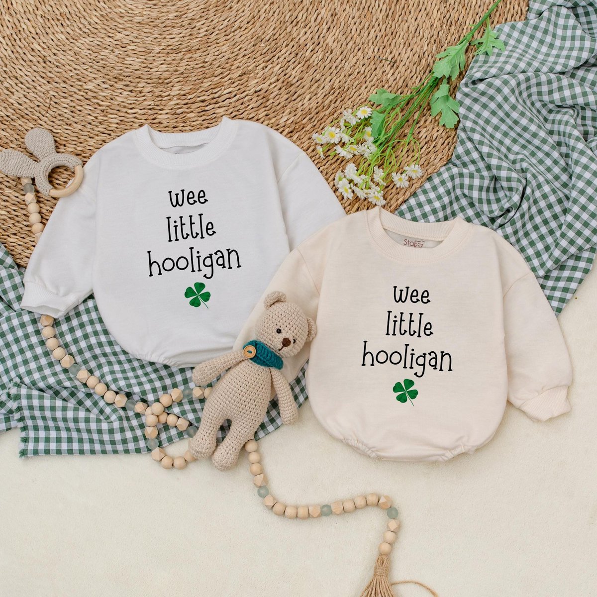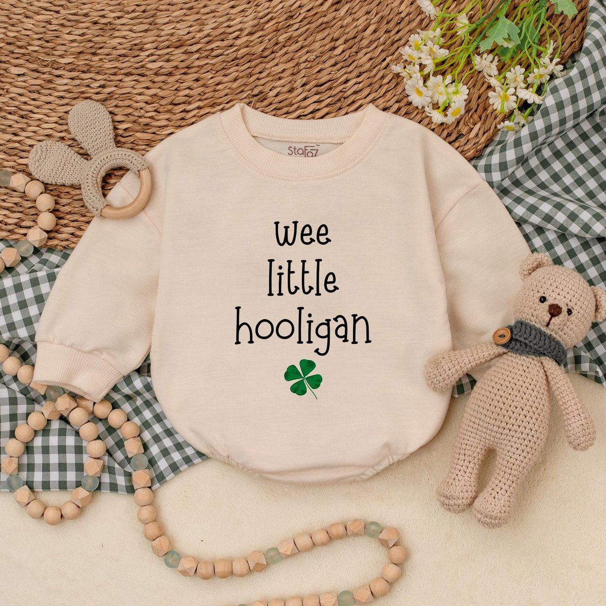 Wee Little Hooligan Baby Romper Green Clover Baby Bodysuit Baby Patrick’s Day Outfit First St Patri 182