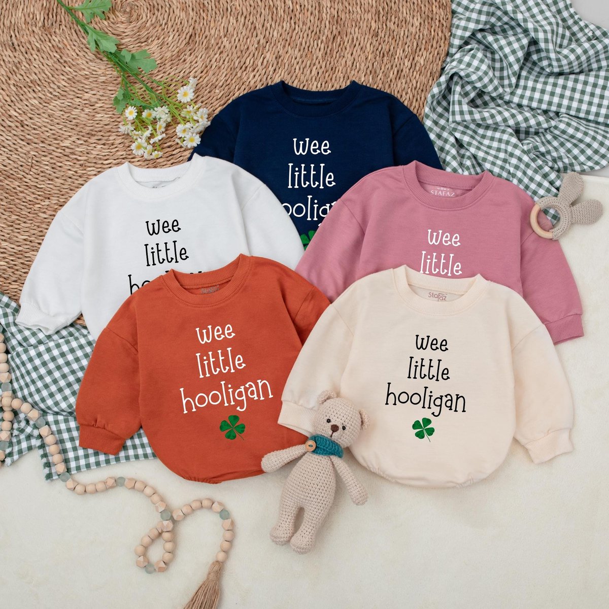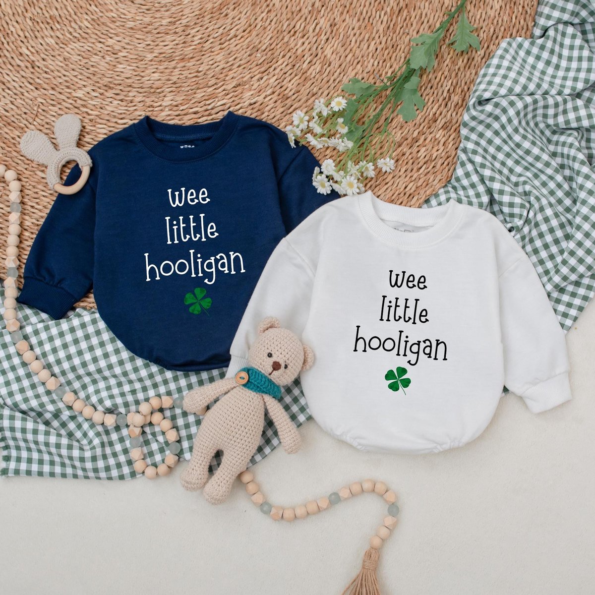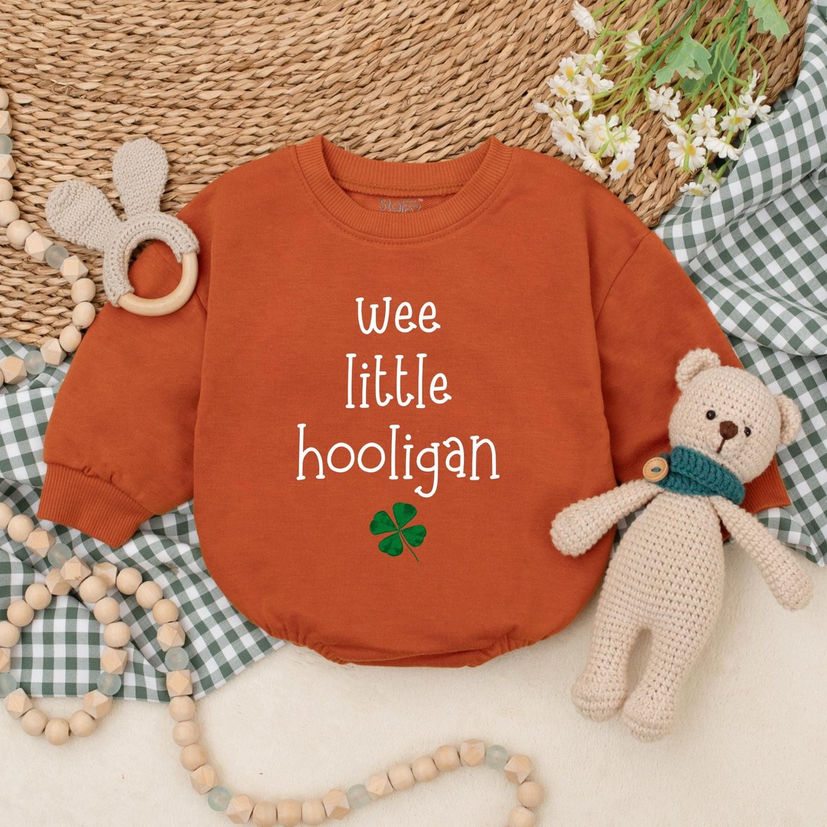 Wee Little Hooligan Baby Romper Green Clover Baby Bodysuit Baby Patrick’s Day Outfit First St Patri 182