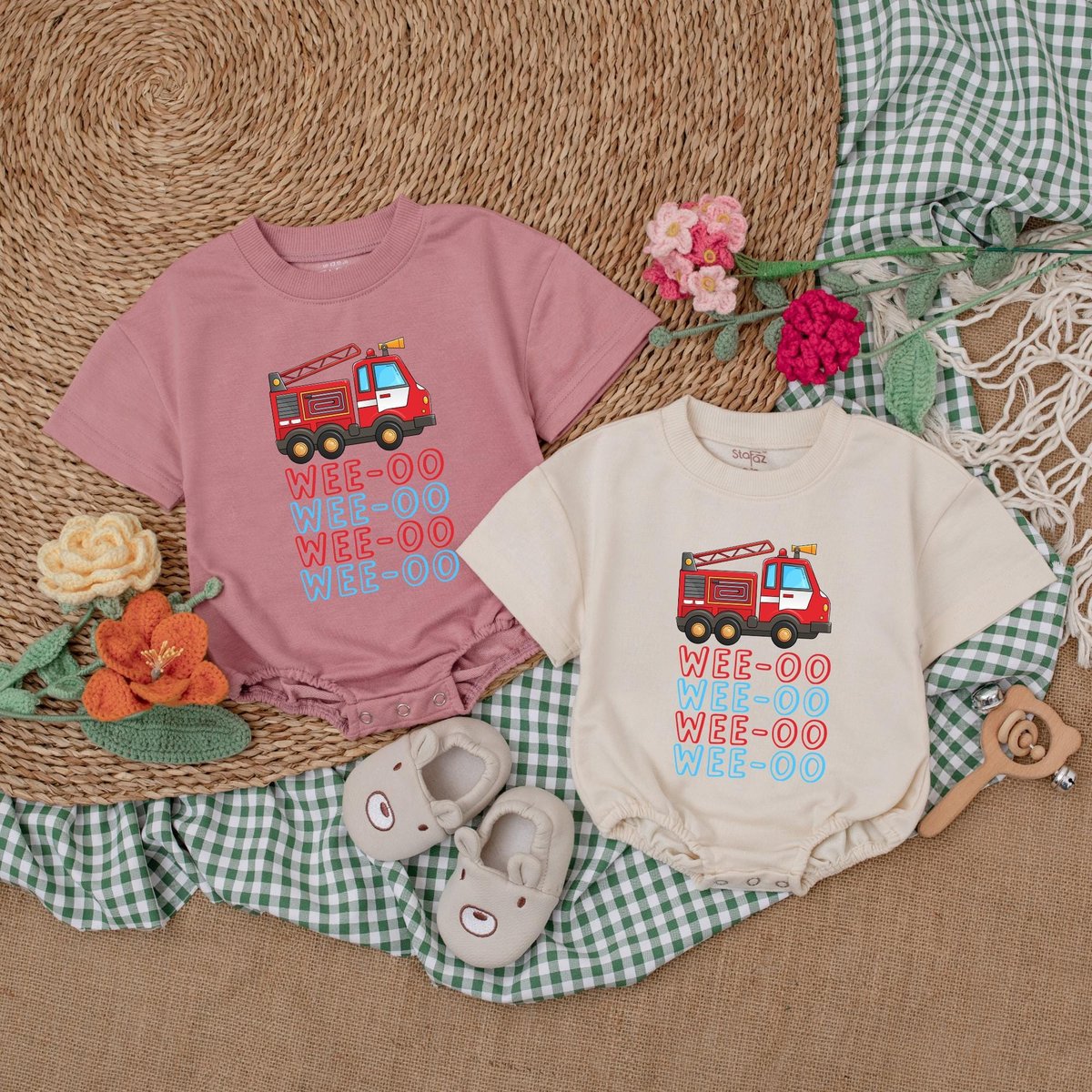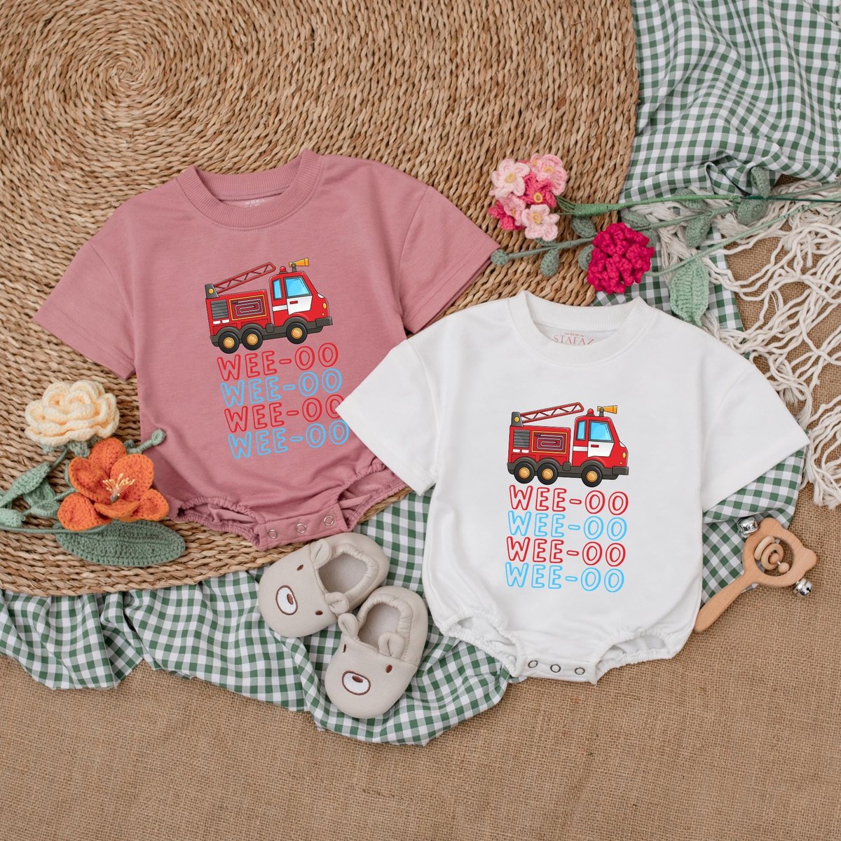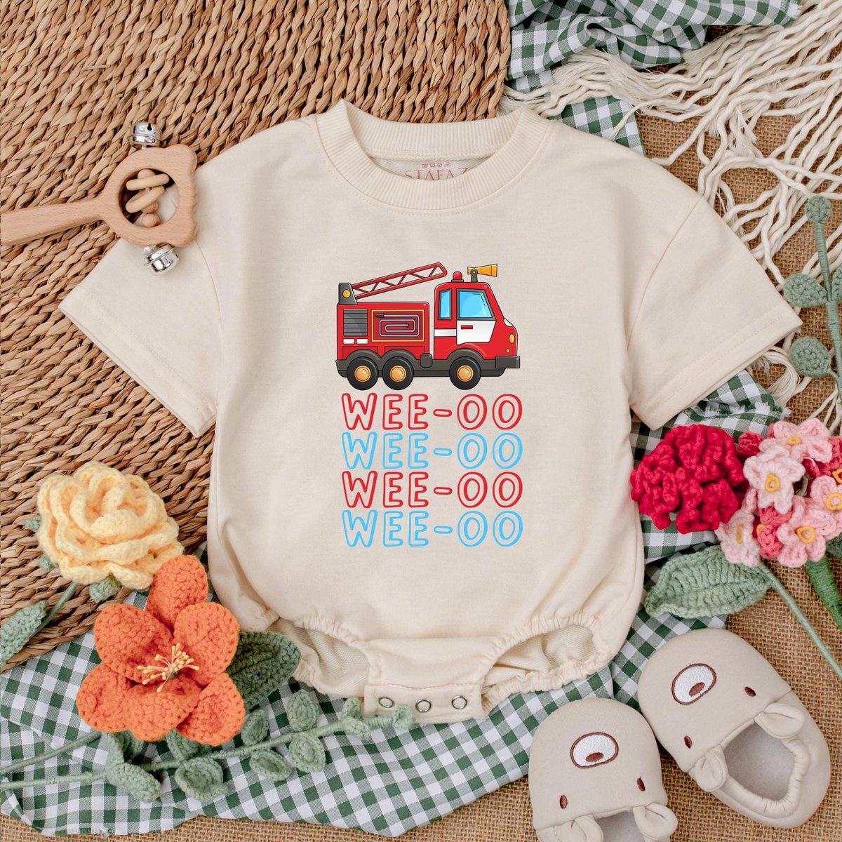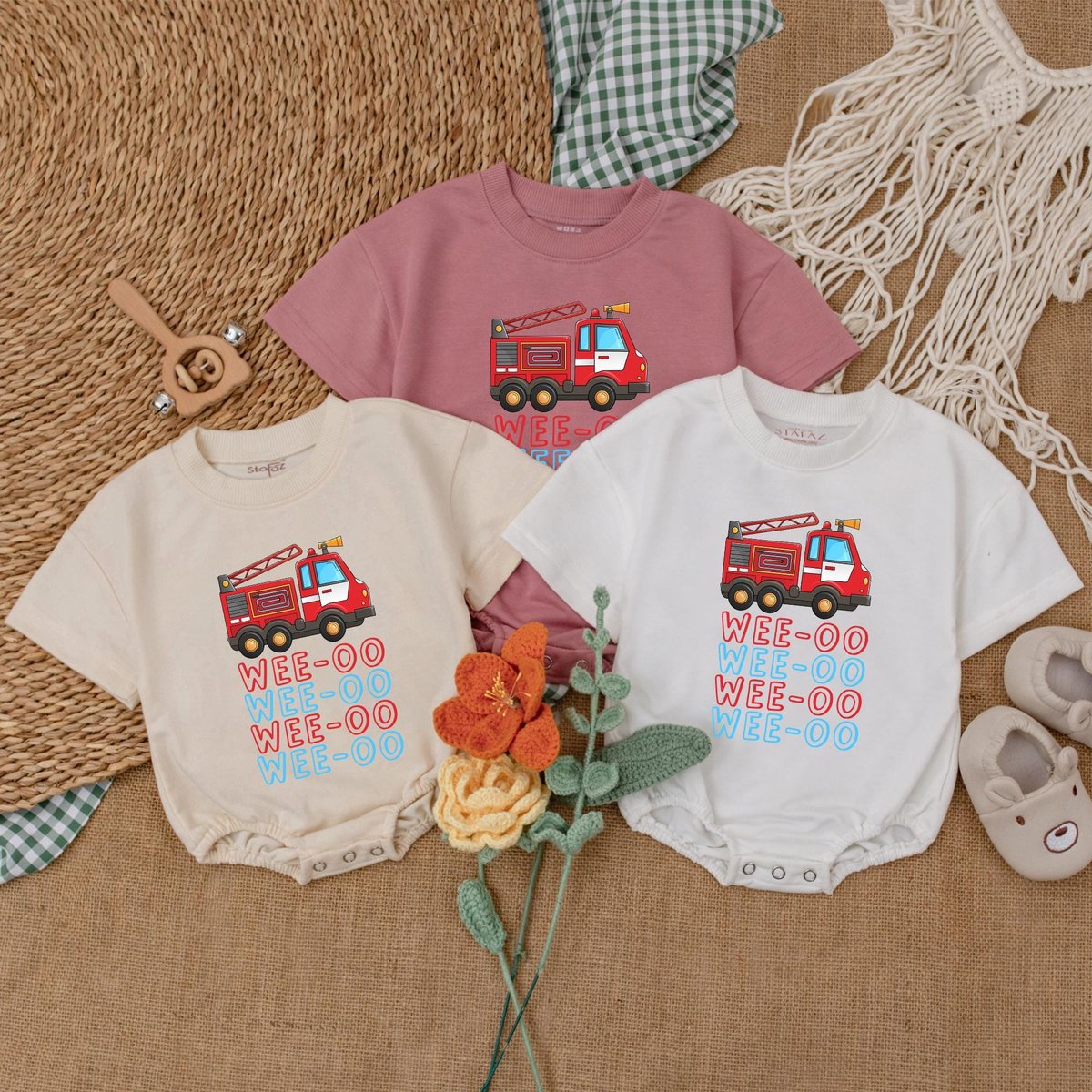 Wee oo Firetruck Baby Romper Firefighter Baby Bodysuit Baby Boy Outfit Romper for Baby Boy Newborn C 188