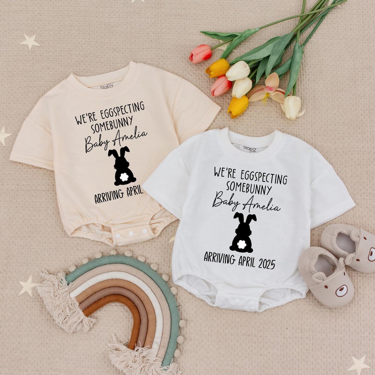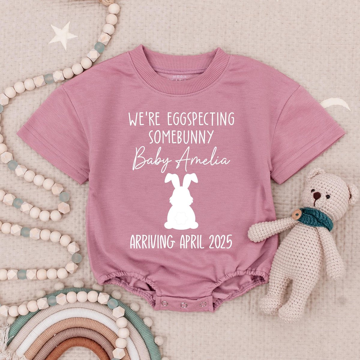 Were Eggspecting Somebunny Baby Romper Easter Announcement Baby Romper Spring Custom Name BabyFunny