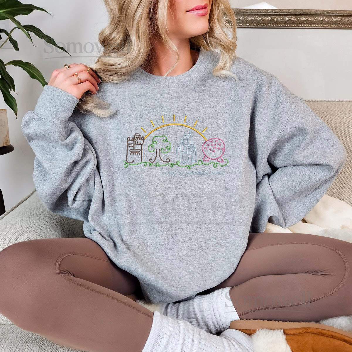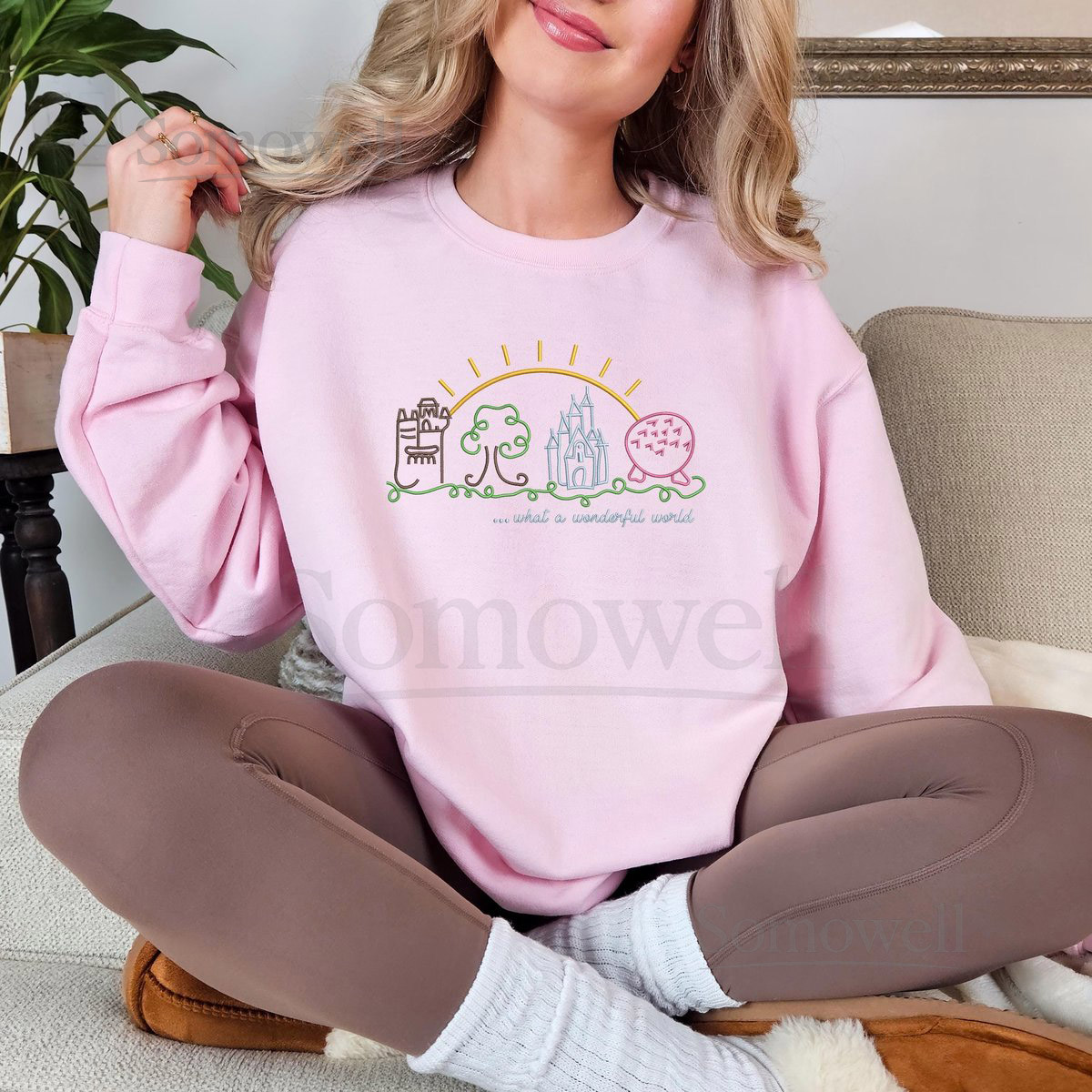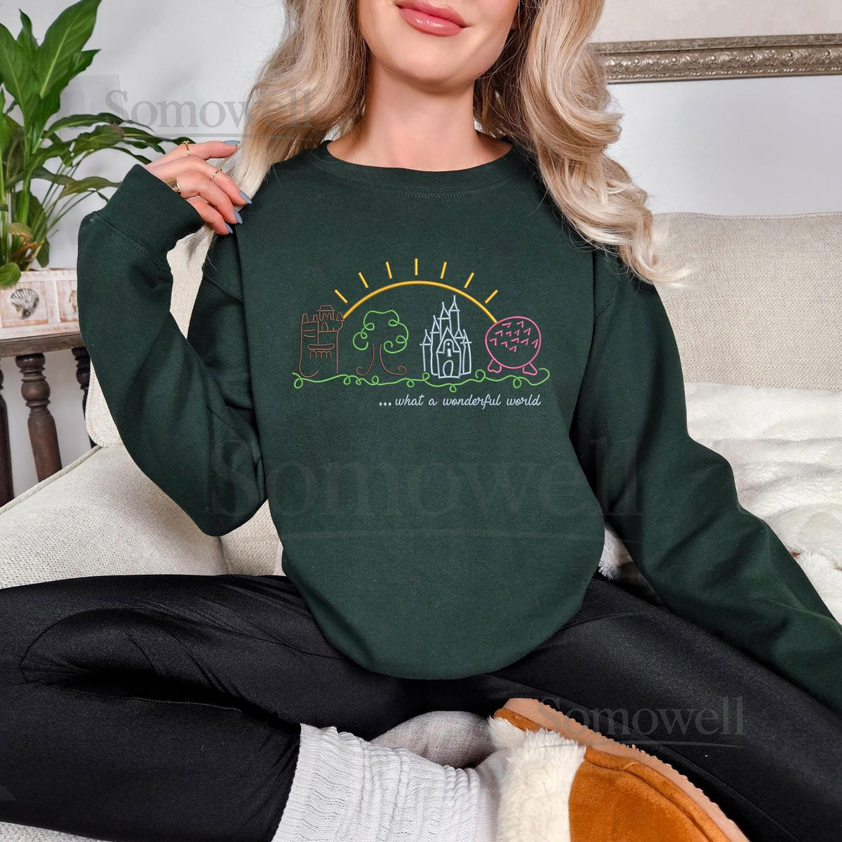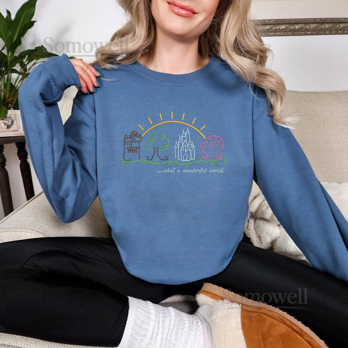 What A Wonderful World Embroidered Sweatshirt Disney Embroidered Shirt Disney Embroidered Sweatshirt Disney Crewneck_163