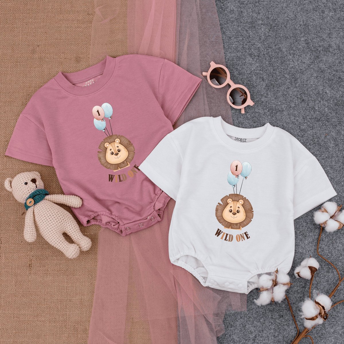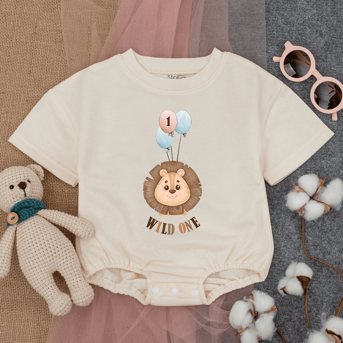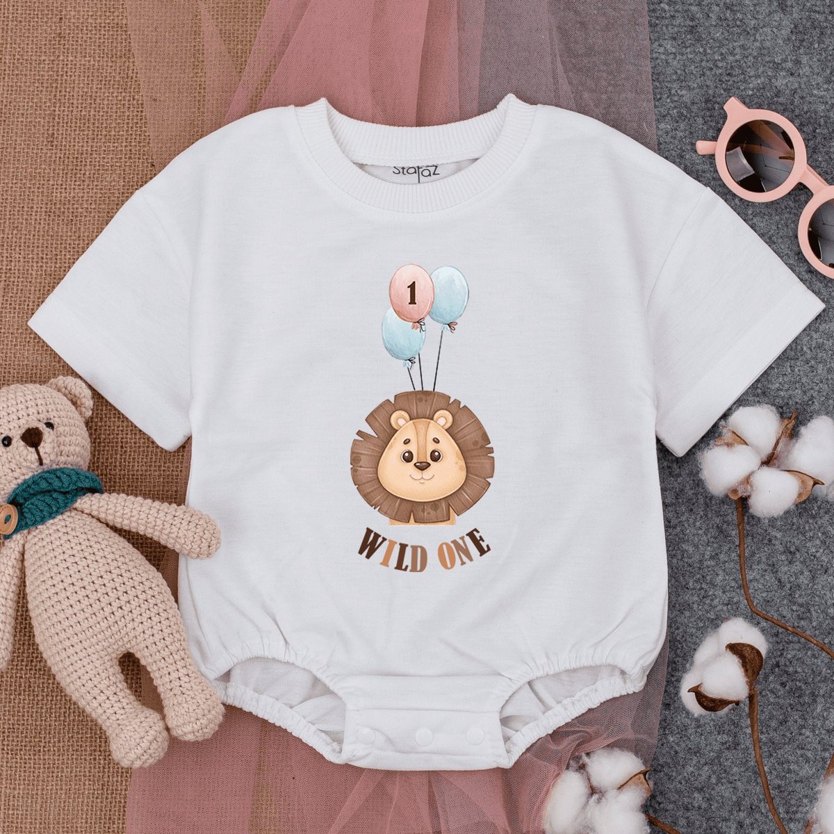 Wild One First Birthday Romper Short Sleeve First Birthday Outfit Baby Clothes Infant Bodysuit Fir 169