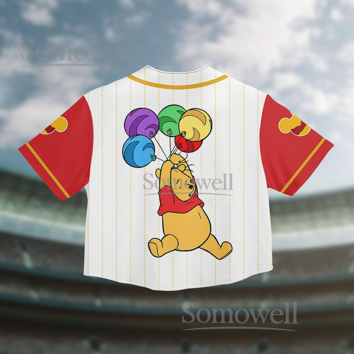 Winnie The Pooh Baseball Jersey Shirt Cute Bear Holding Balloons Crop Top Personalized Gift