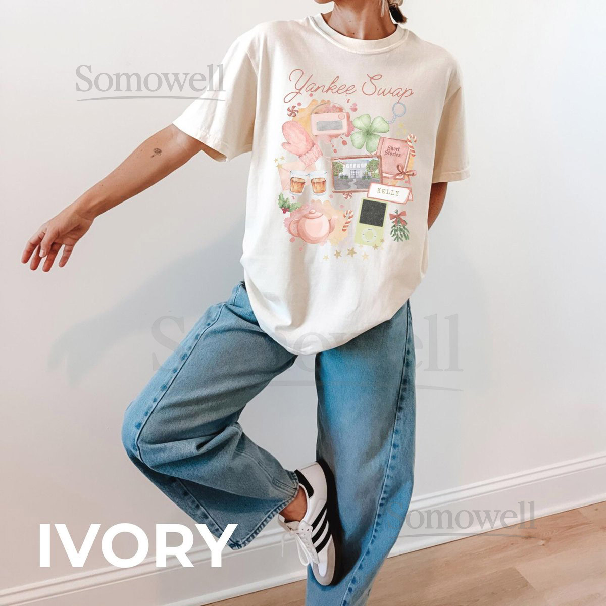 YANKEE SWAP CHRISTMAS Tee Comfort Colors Holiday T-Shirt Dunder Mifflin Shirt The Office Christmas Party Michael Scott White Elephant_620