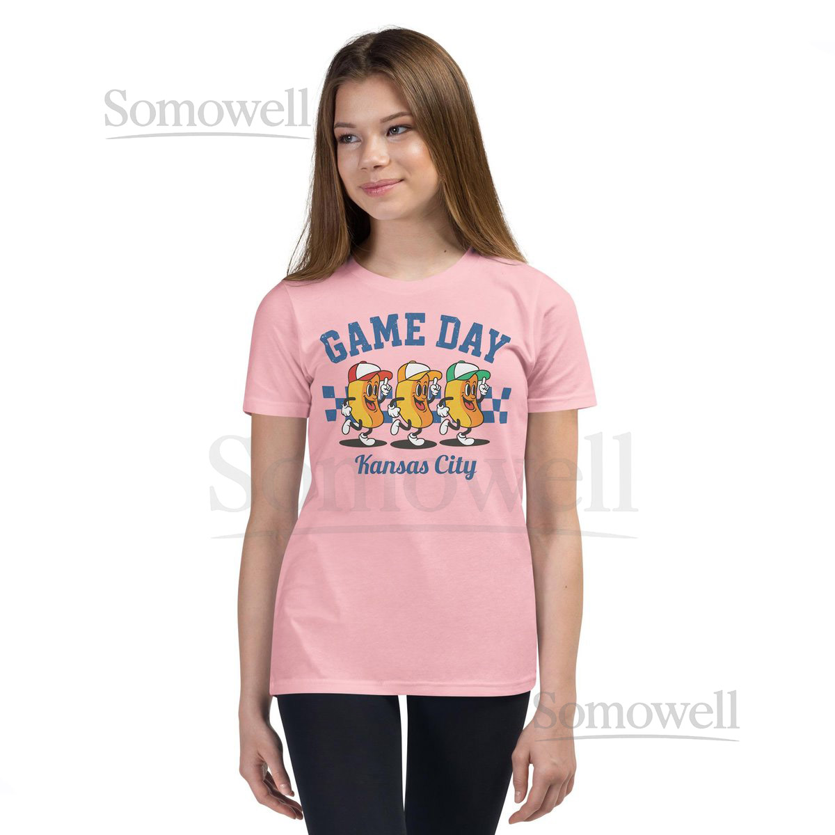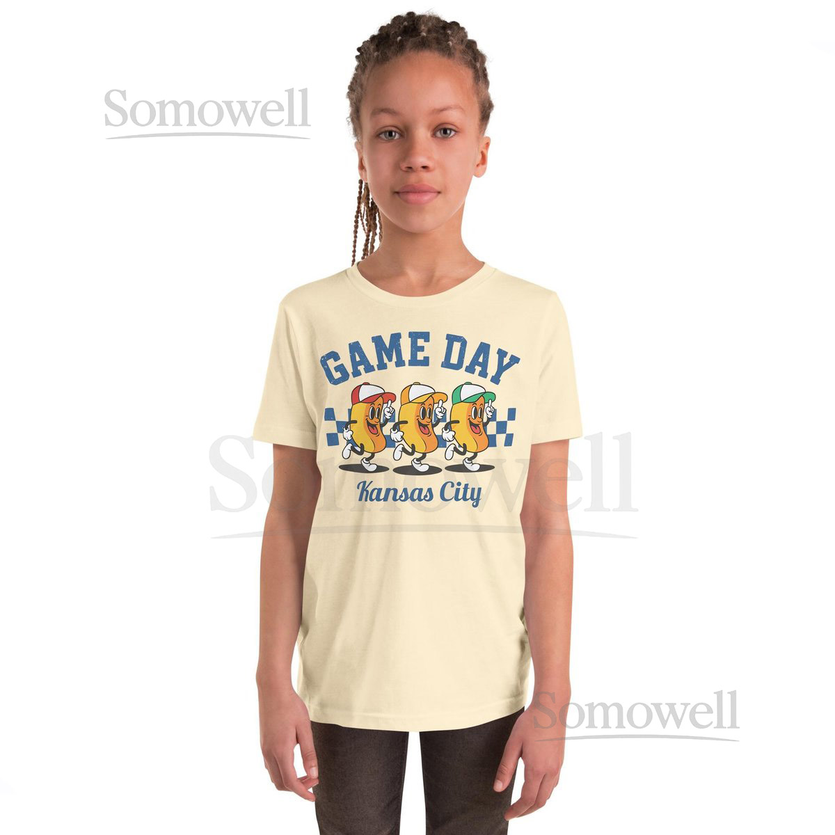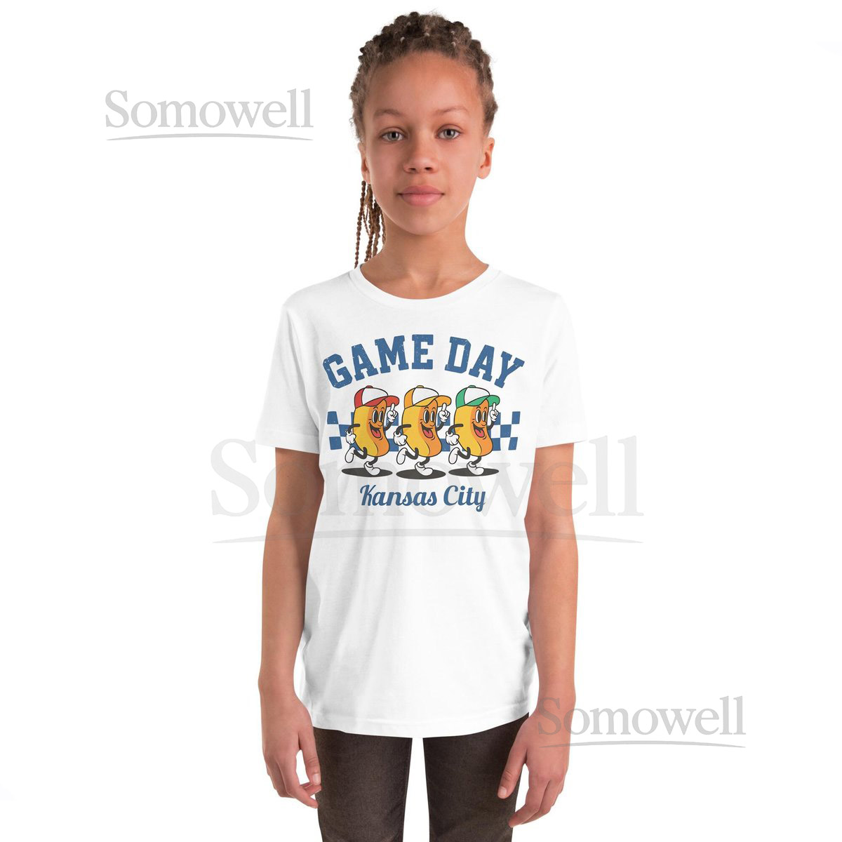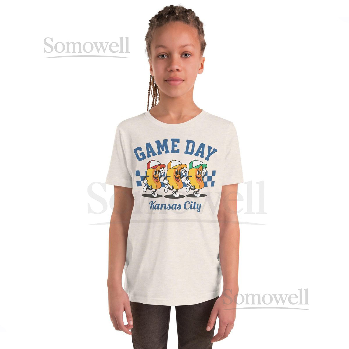 Youth Hot Dog Derby Royals Short Sleeve T-Shirt Bella Canvas Tee Kansas City Baseball Kids KC gear Game Day Boys Girls Crown Town_968