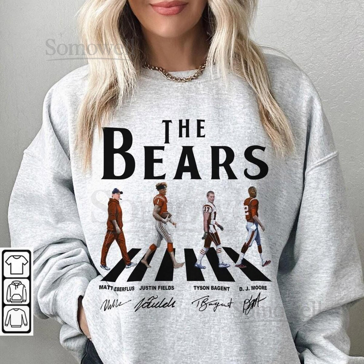 Bears Walking Abbey Road Signatures Football Shirt Matt Eberflus Justin Fields Tyson Bagent D. J. Moore Chicago Vintage_193