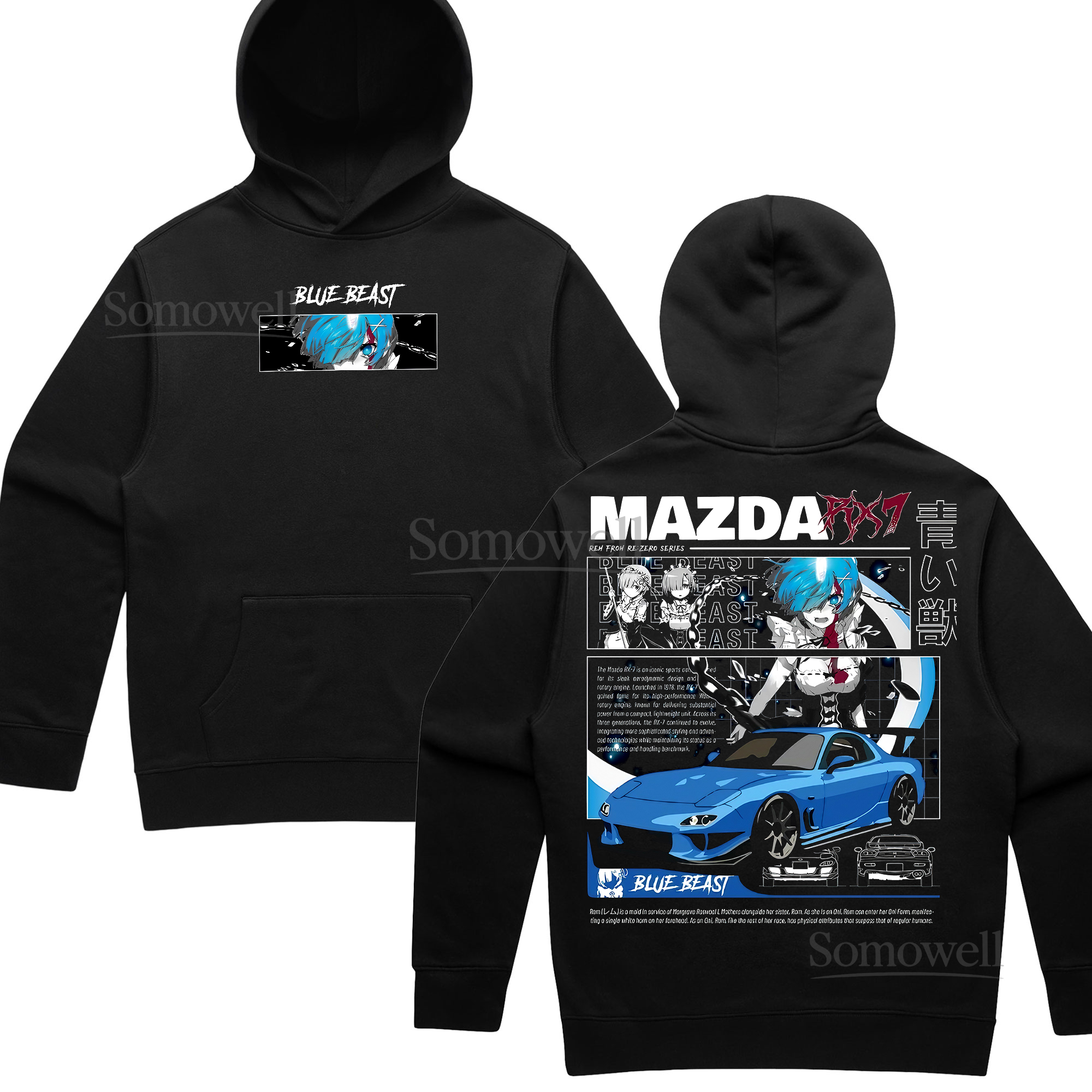 Blue Hair Anime Girl Mazda RX7 Graphic ,hoodie sweatshirt t shirt vintage Japanese Streetwear Car T Shirt