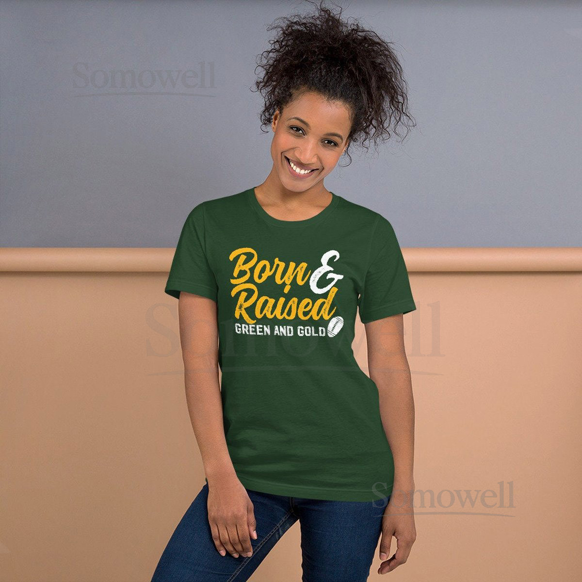 Born and Raised Green and Gold Unisex Bella Canvas T Shirt Green Bay Packers Go Pack Go Boutique T-shirt_39