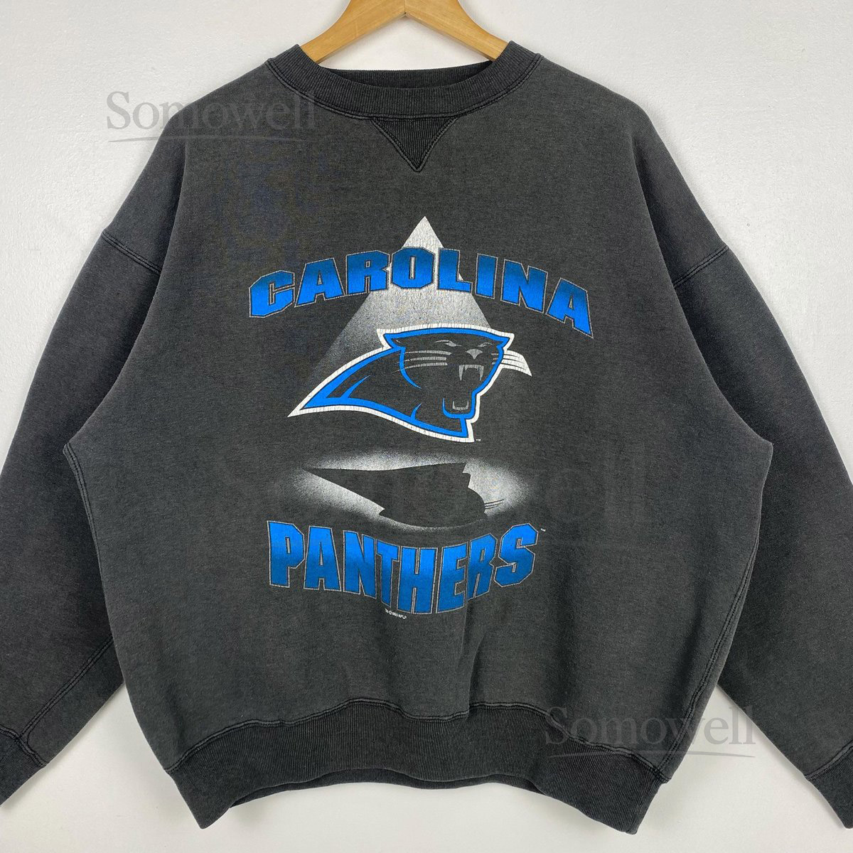 90s NFL Carolina Panthers Crewneck Sweatshirt Print Logo Faded Black Color Mens L_14