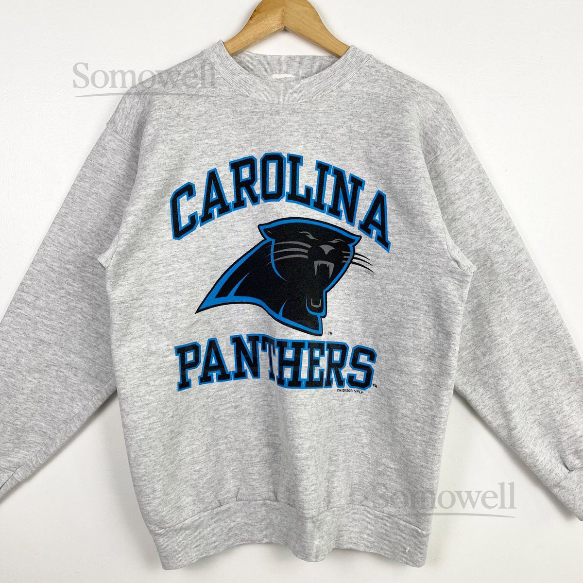 90s NFL Carolina Panthers Crewneck Sweatshirt Print Logo Grey Color Mens M_15