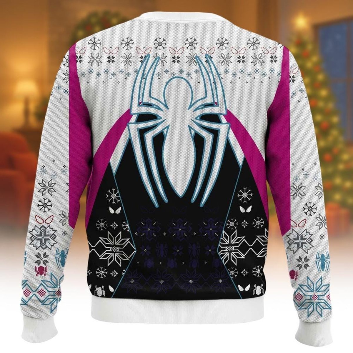 Spider-Gwen White Pink Ugly Christmas Sweater Spider Logo Superhero Holiday Knit Jumper