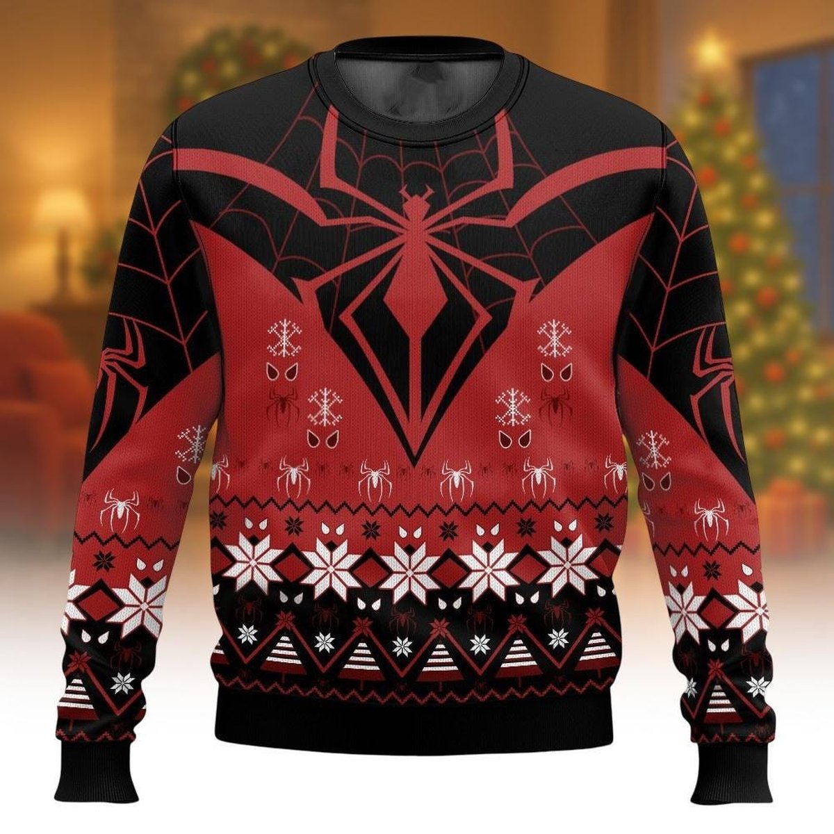 Spider Man Red Black Christmas Ugly Sweater Superhero Logo Pattern Holiday Knit Jumper