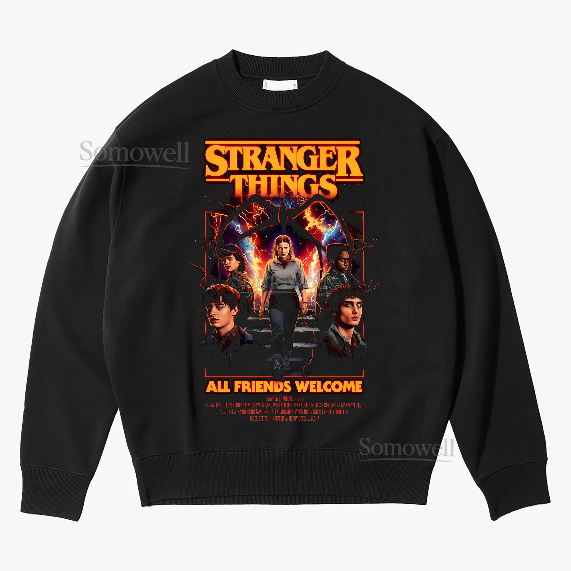 Stranger Things All Friends Welcome T-Shirt, Vintage Hawkins Crew Graphic ,hoodie sweatshirt vintage, Retro Stranger Things Movie Poster for Fans