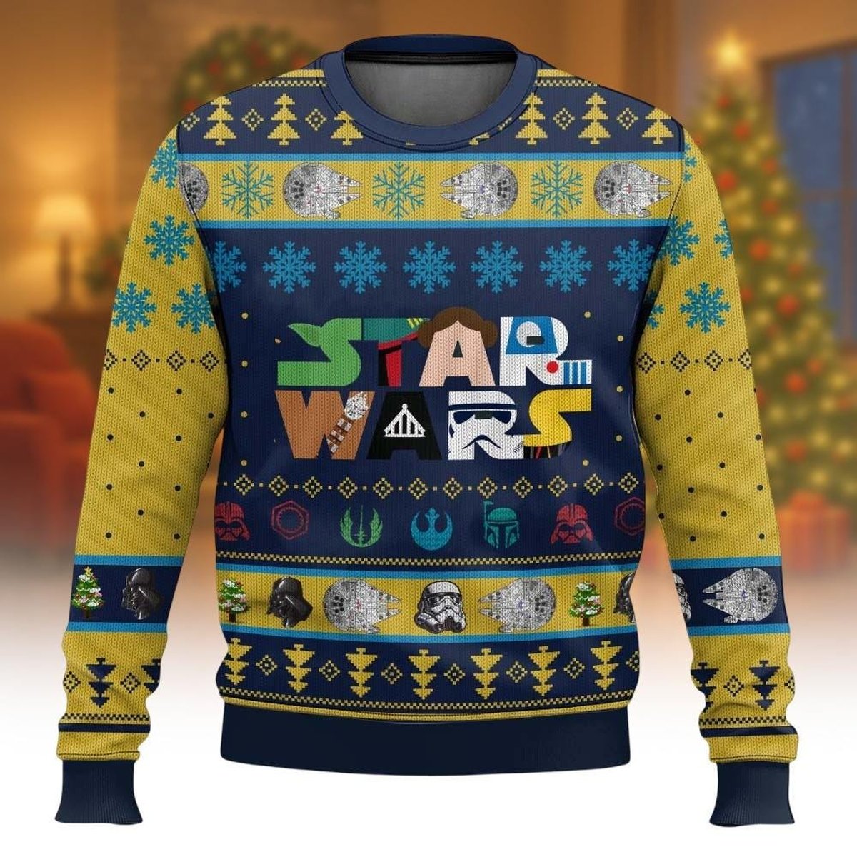 Star Wars Logo Pattern Ugly Christmas Sweater Classic Galactic Holiday Knit Jumper