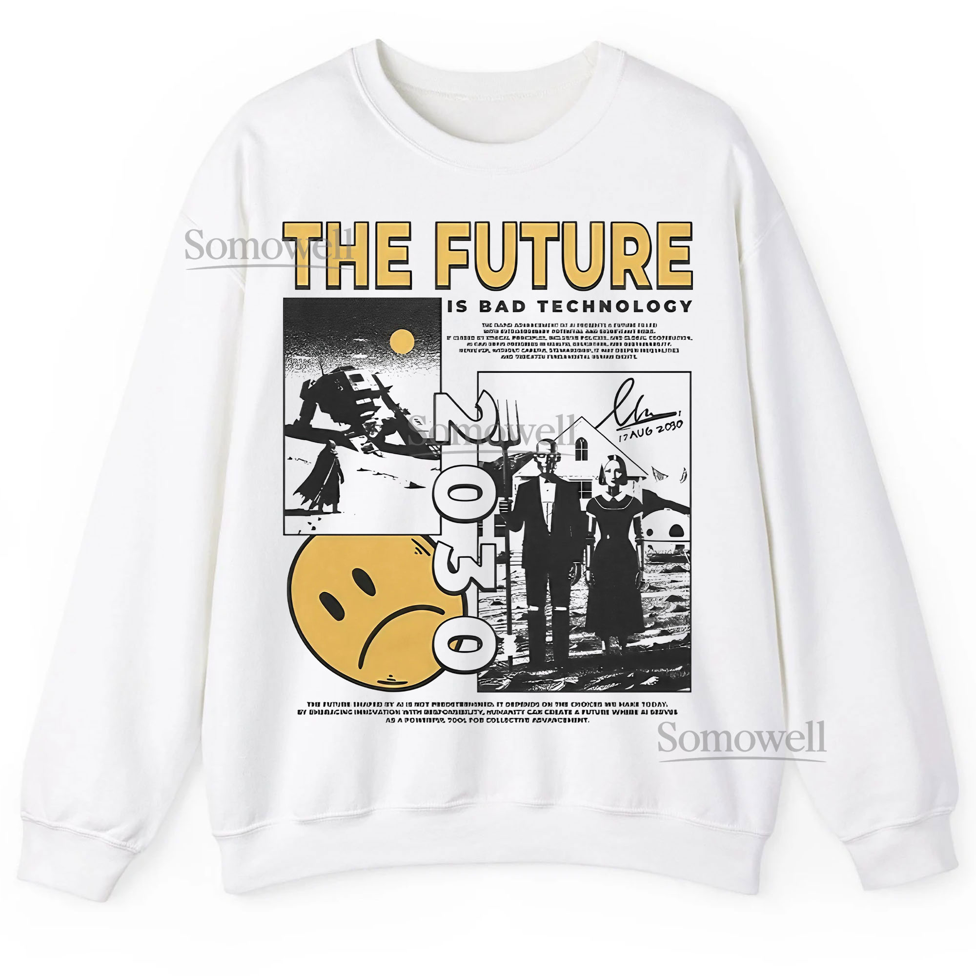 The Future is Bad Technology 2020 Sad Face Graphic ,hoodie sweatshirt t shirt vintage Urban Streetwear T Shirt