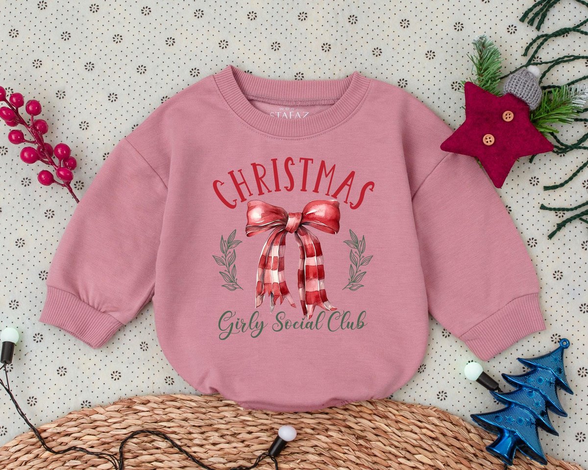 Christmas Girly Bow Romper First Christmas Clothes Toddler Sweatshirt Baby Shower Gift Bubble Romper