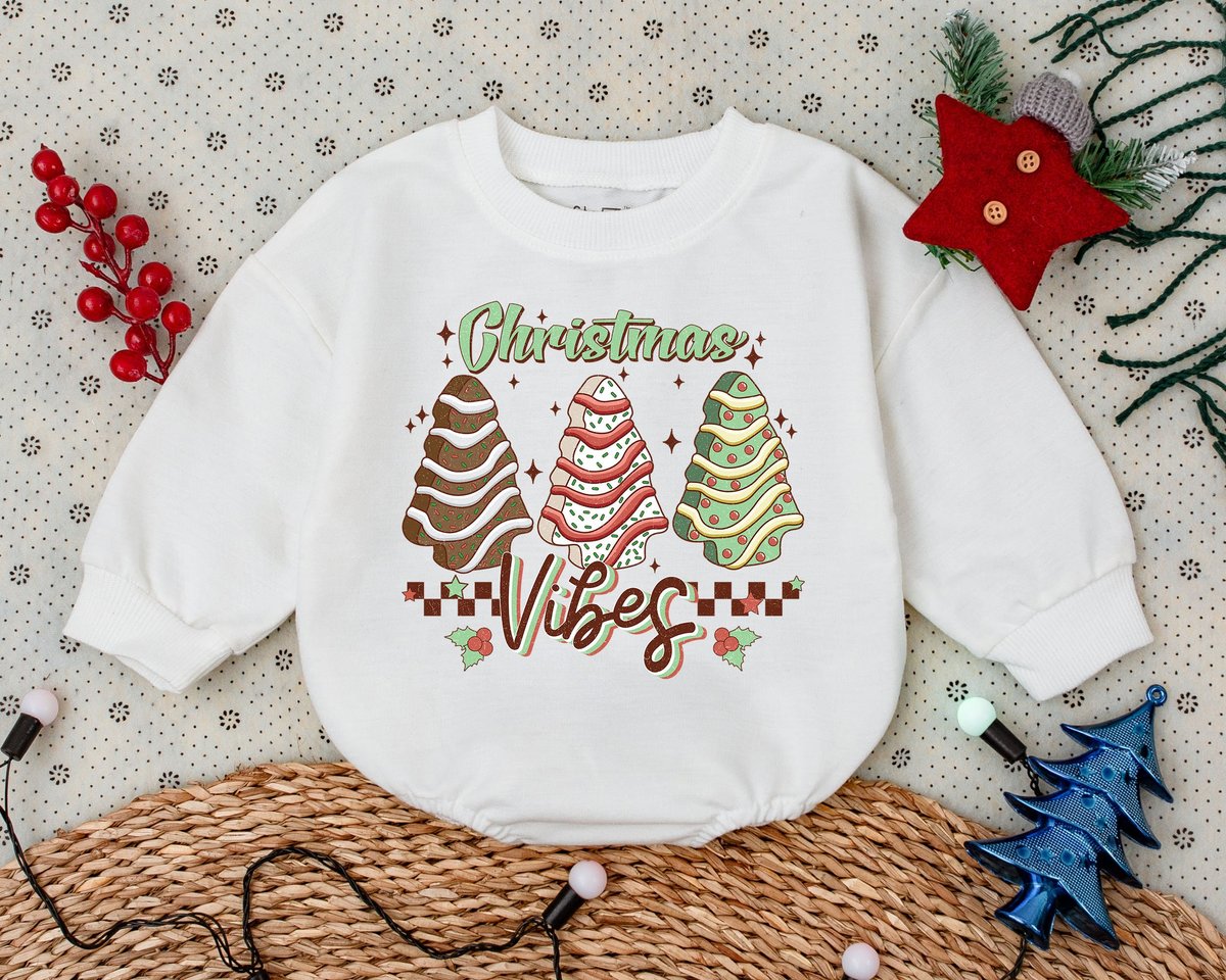 Christmas Vibes Romper Vintage Christmas Tree First Christmas Clothes Toddler Sweatshirt Baby Shower