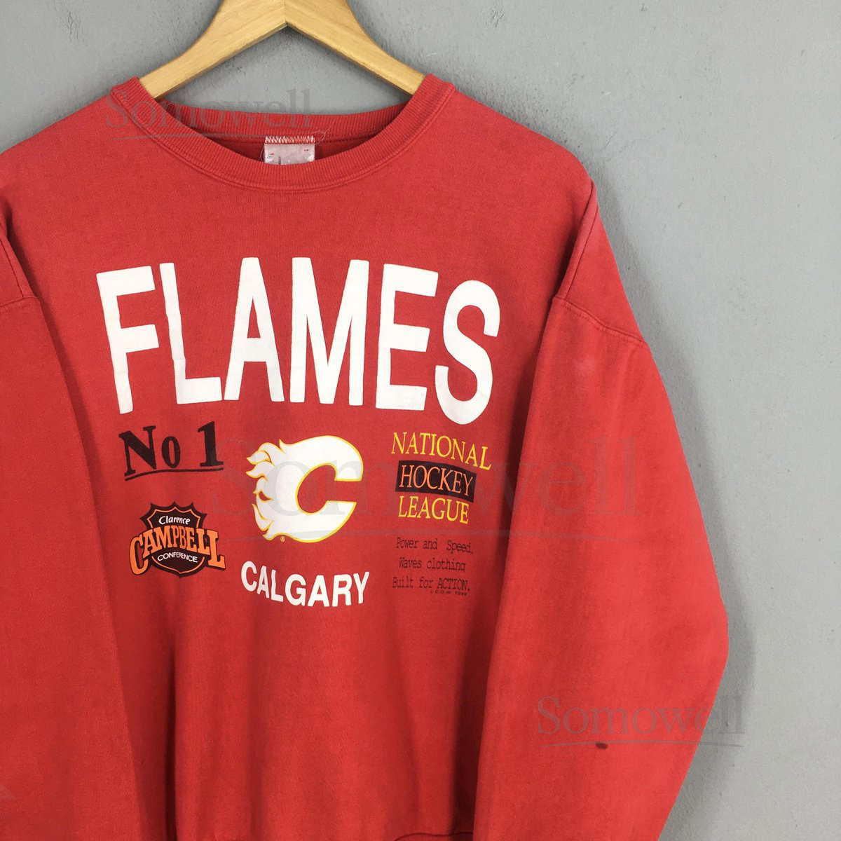 Vintage Calgary Hockey Crewneck American Sports Sweatshirt US Sports Clothing Hockey Fan Gift Hockey Apparel Vintage Sweater Flame_109