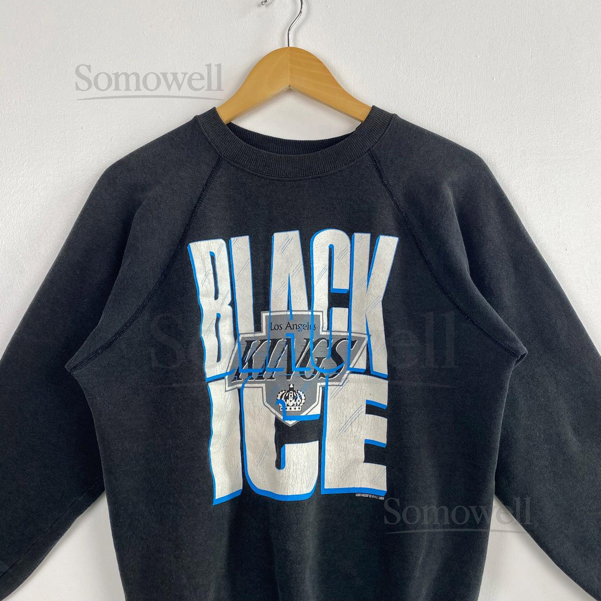 Vintage 80s Los Angeles Kings Crewneck Sweatshirt – NHL – Distressed – Print Logo – Black Color – Mens Fit To M_107