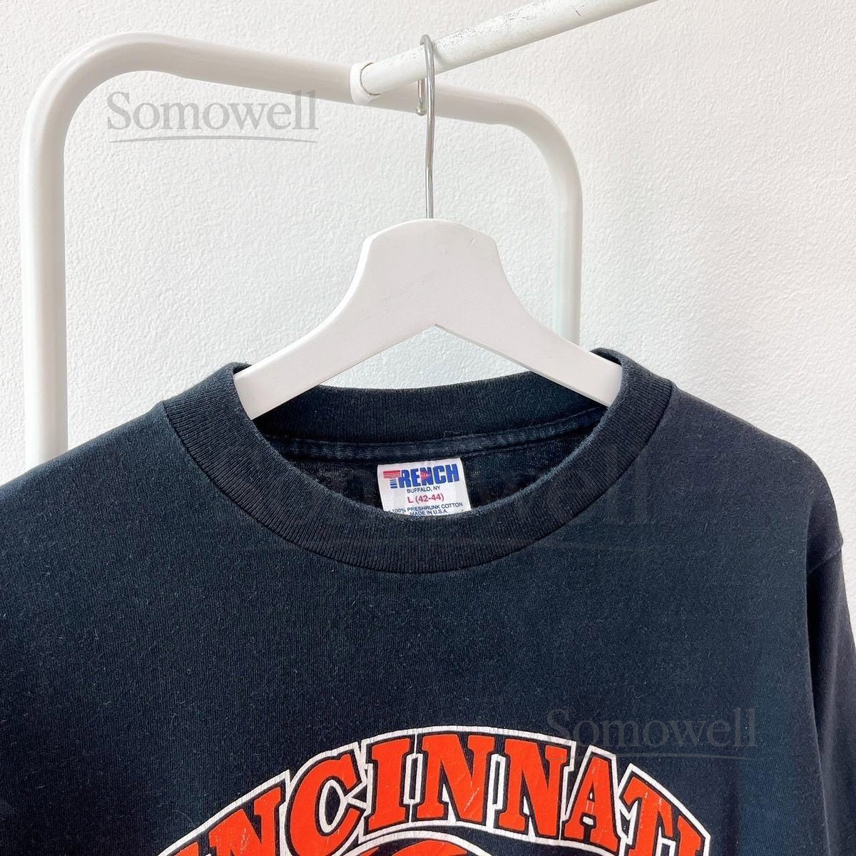 $19.99 – $39.99Price range: $19.99 through $39.99Vintage 90s Cincinnati Bengals football Trench made in USA black t-shirt L_957 This comfortable t-shirt offers a perfect fit with a classic crew neckline, crafted from soft, breathable 100% cotton fabric for all-day comfort. Its durable material makes it ideal for casual wear, sports, or layering in your wardrobe. The shirt features a unique design […]
