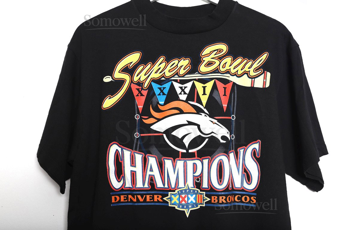 vintage DENVER BRONCOS nfl football SUPER Bowl black short sleeve vintage t-shirt Super Bowl 32 1998 football shirt – Free Shipping U.S.A_585