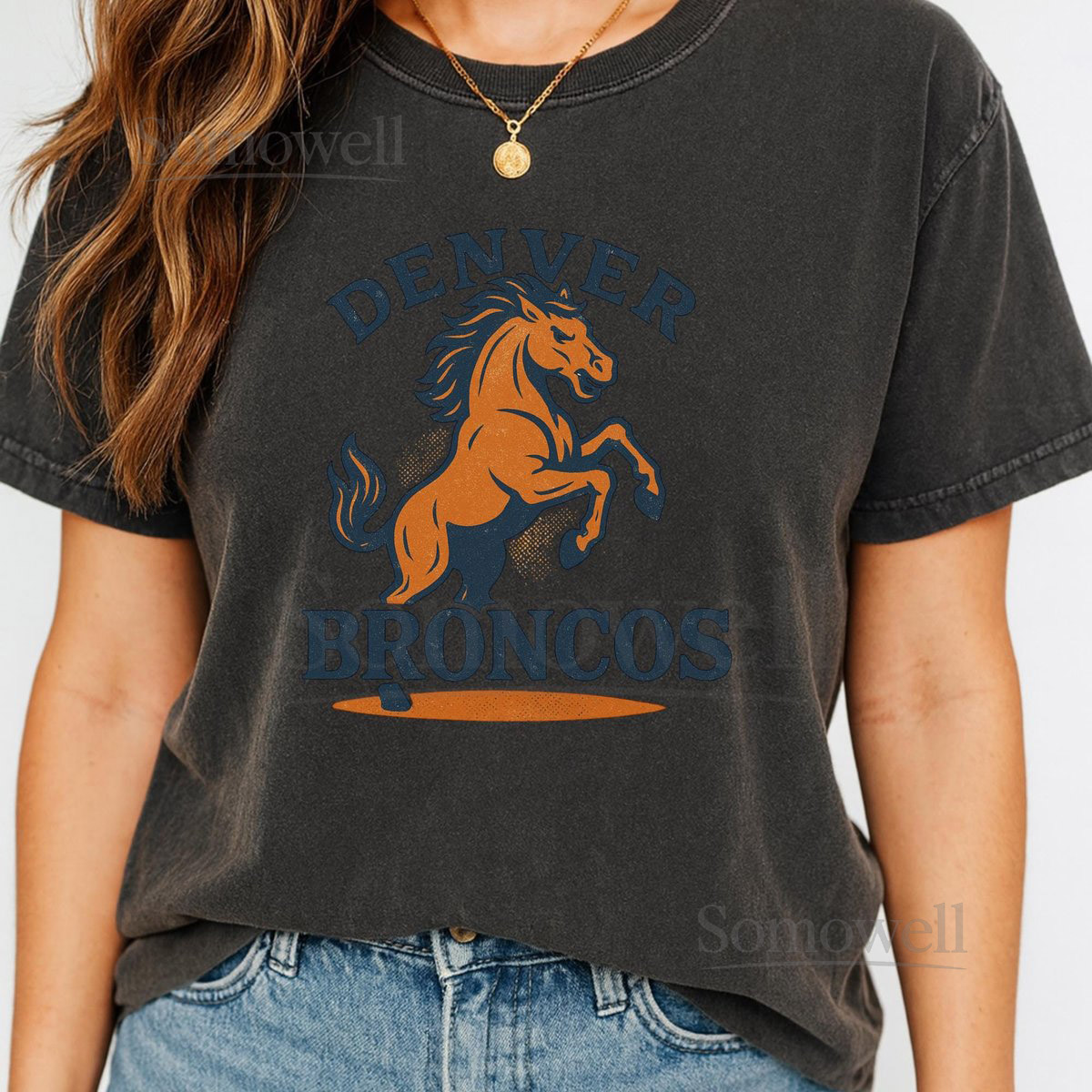 Vintage Denver Broncos T-Shirt Retro Horse Graphic Distressed NFL Tee_589