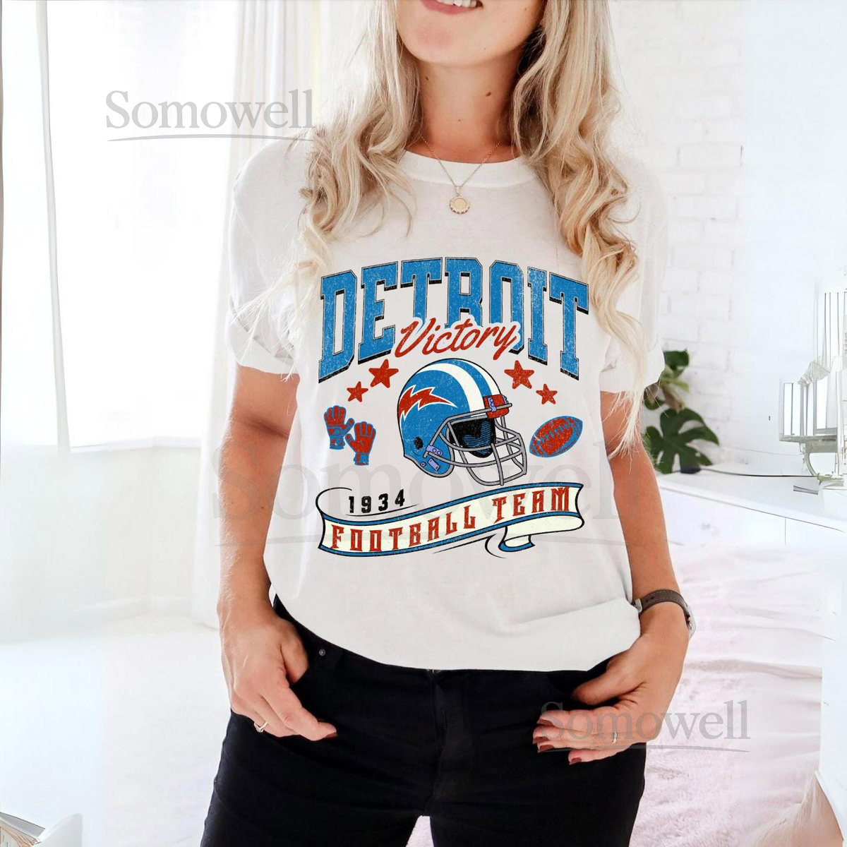 Vintage Detroit Football Crewneck Comfort Colors Tee_706