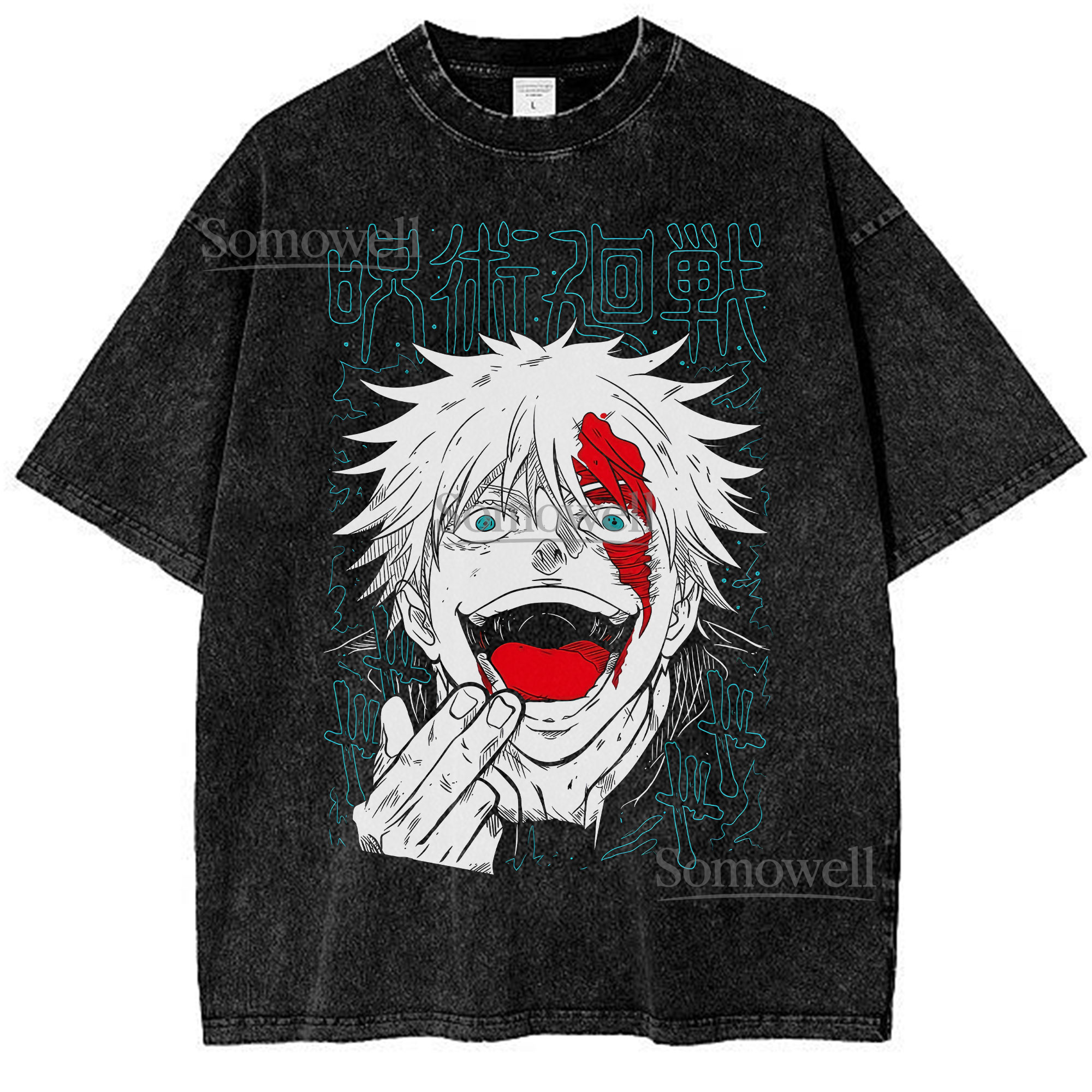 White Haired Cursed Anime Character Graphic ,hoodie sweatshirt t shirt vintage Intense Manga Art Unisex Casual Shirt
