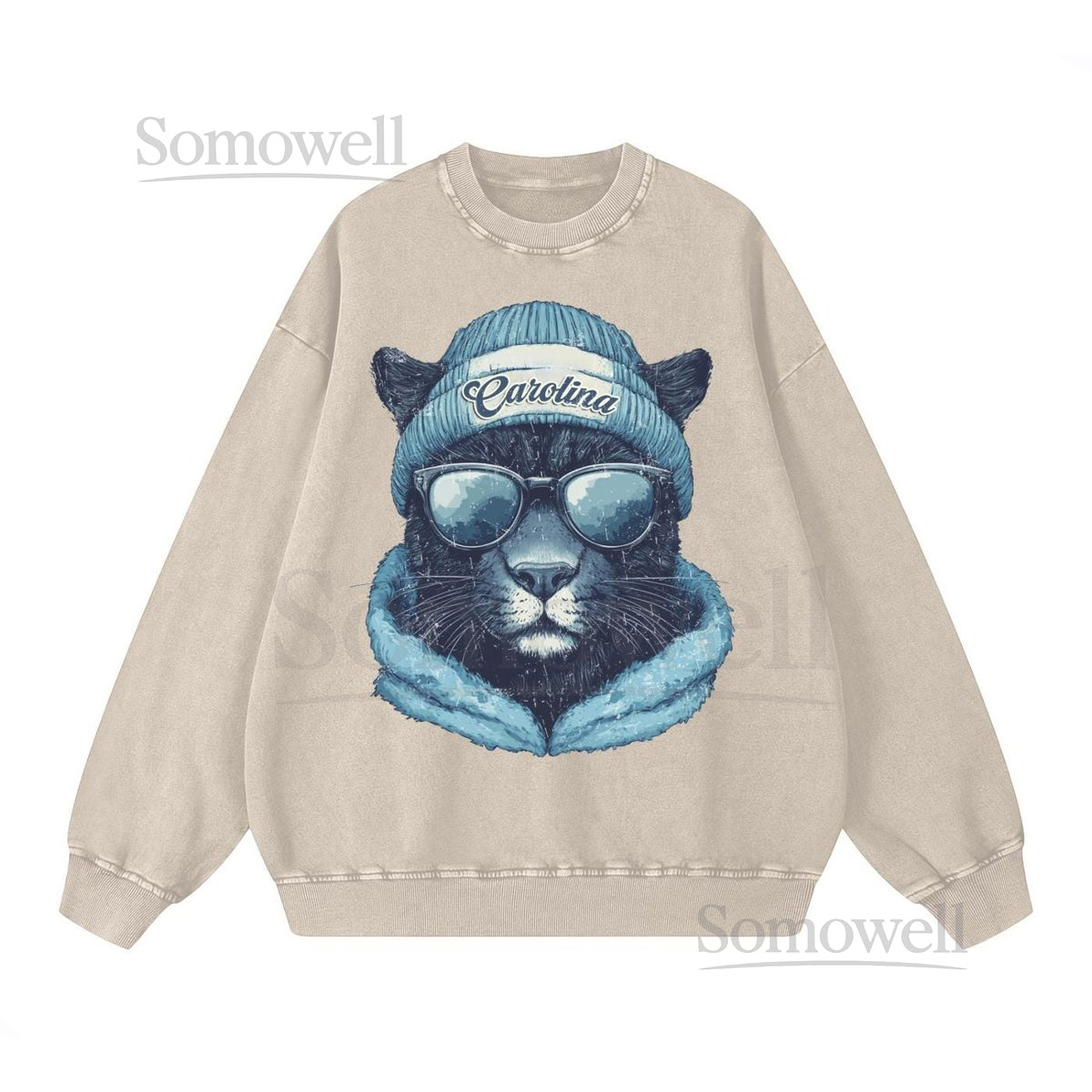 Carolina Spirit Animal Sweatshirt Oversized Acid Wash Crewneck Game Day Sweater_414