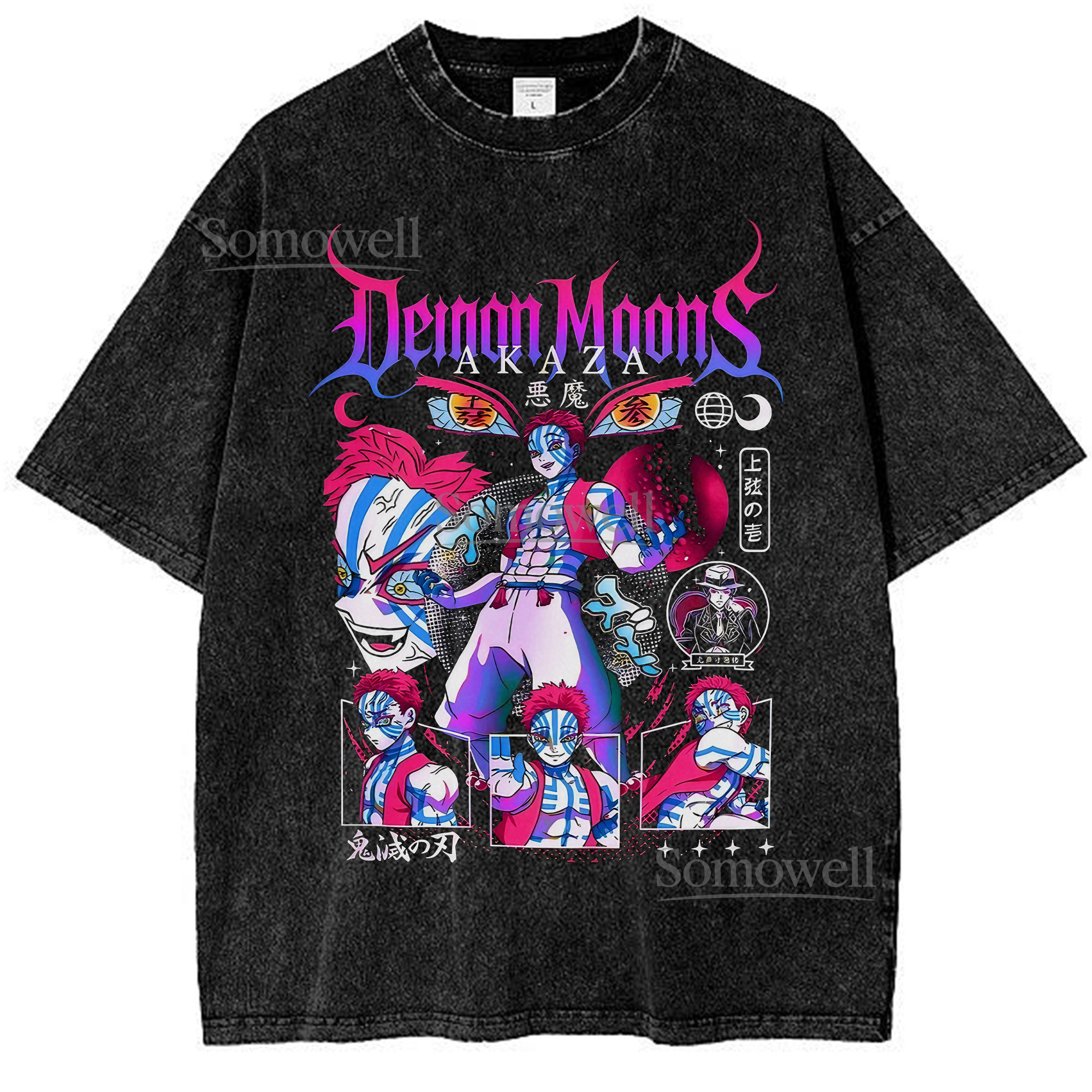 Akaza Demon Moons Upper Rank Three Demon Slayer Anime Graphic ,hoodie sweatshirt t shirt vintage Japanese Streetwear T Shirt