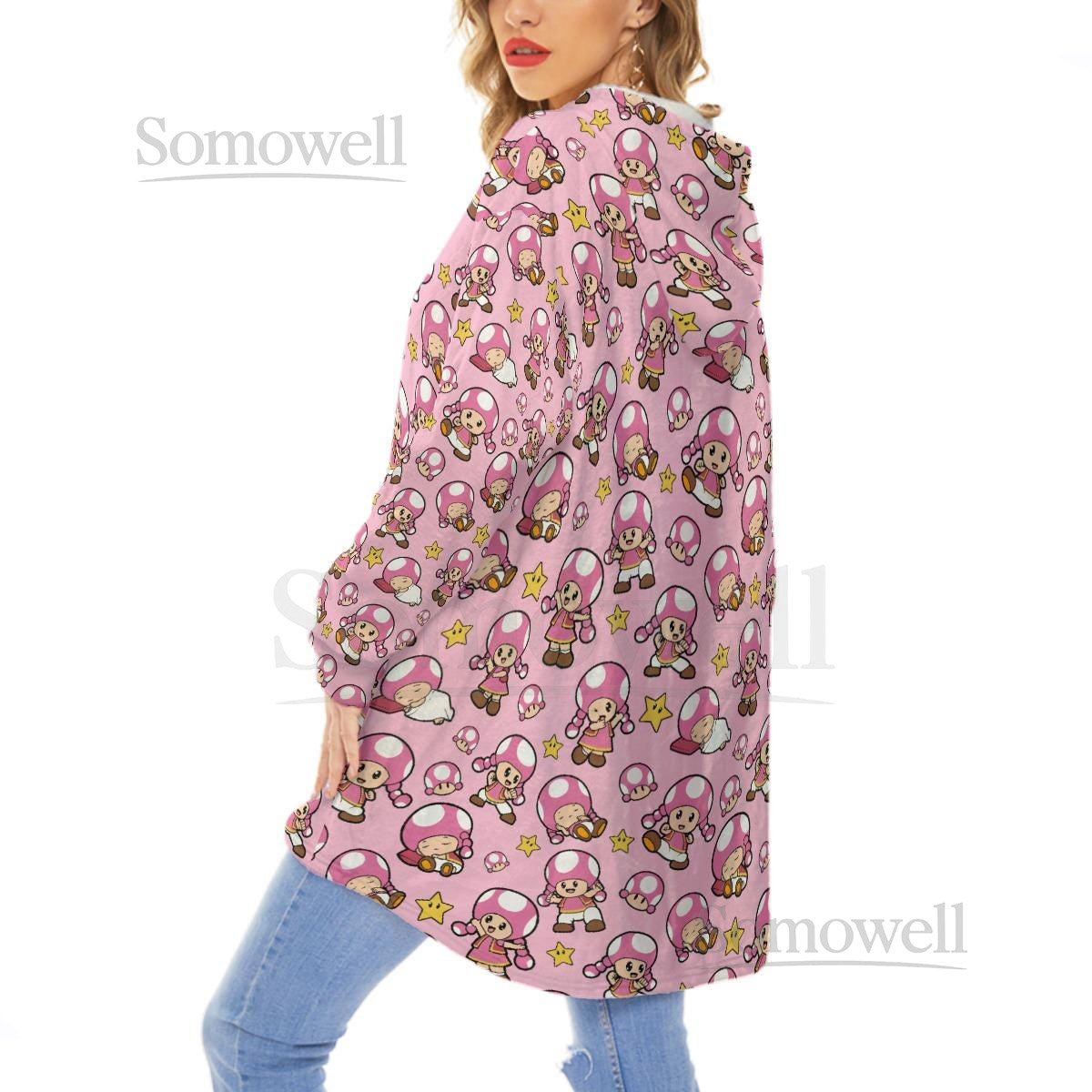 Toadette Unisex Fall Winter Flannel Fleece Hoodie Blanket Cozy Wearable Blanket Loungewear_80