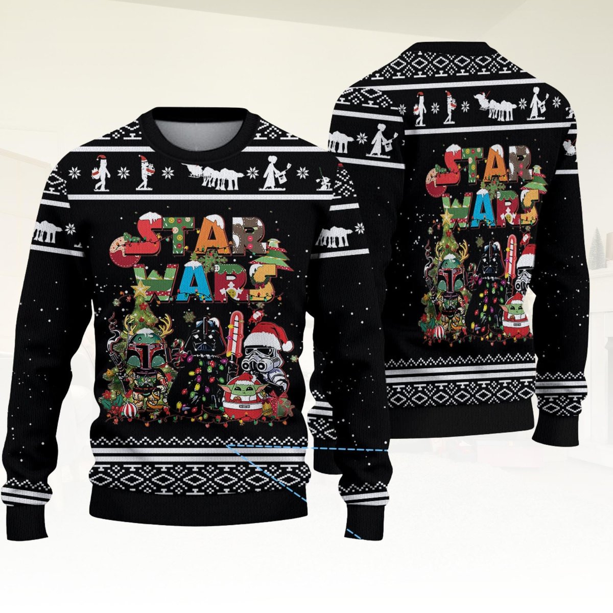 Star Wars Black Ugly Christmas Sweater Funny Movie Characters Holiday Knit Jumper
