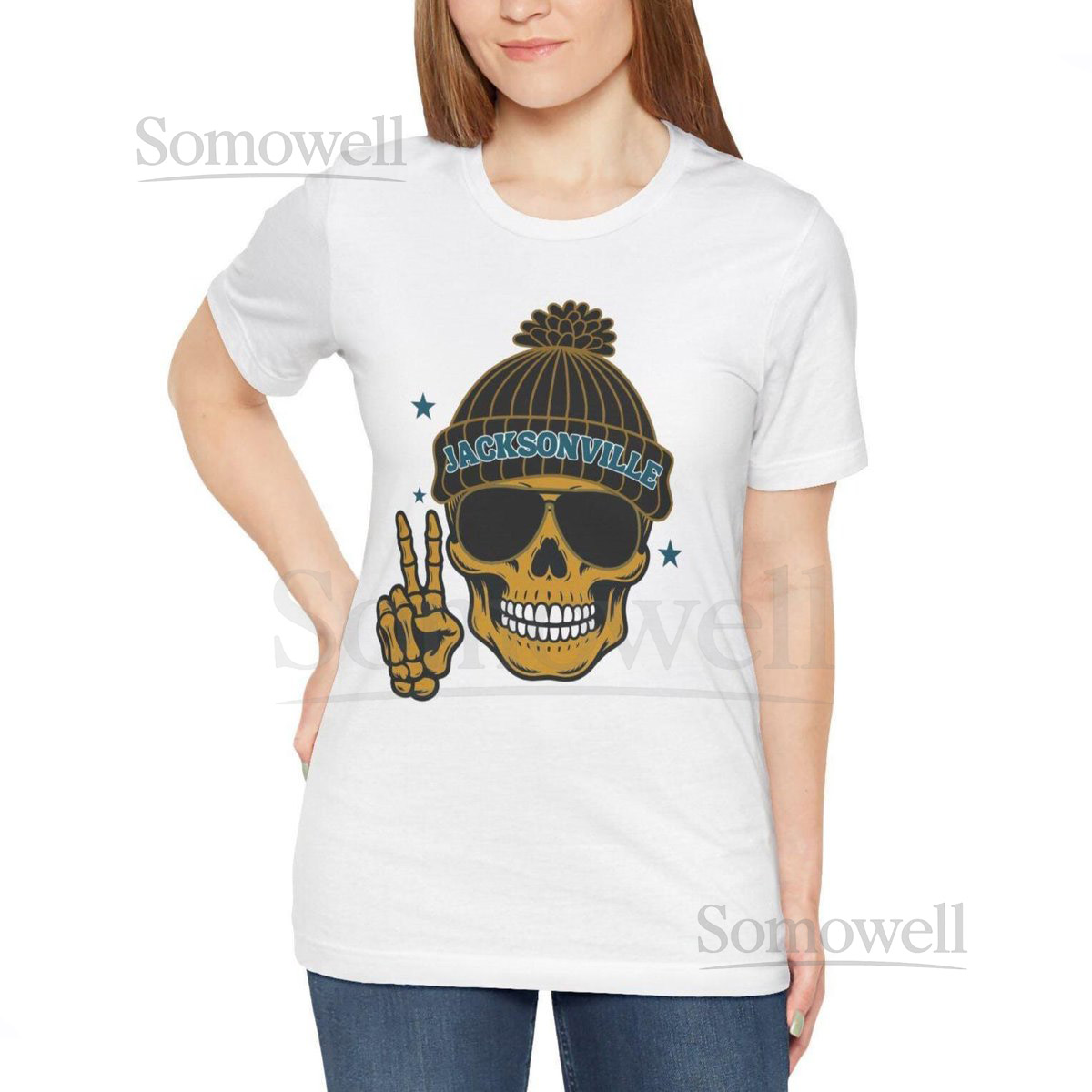Jacksonville T-Shirt Football Fan Skeleton Peace Sign Graph_691