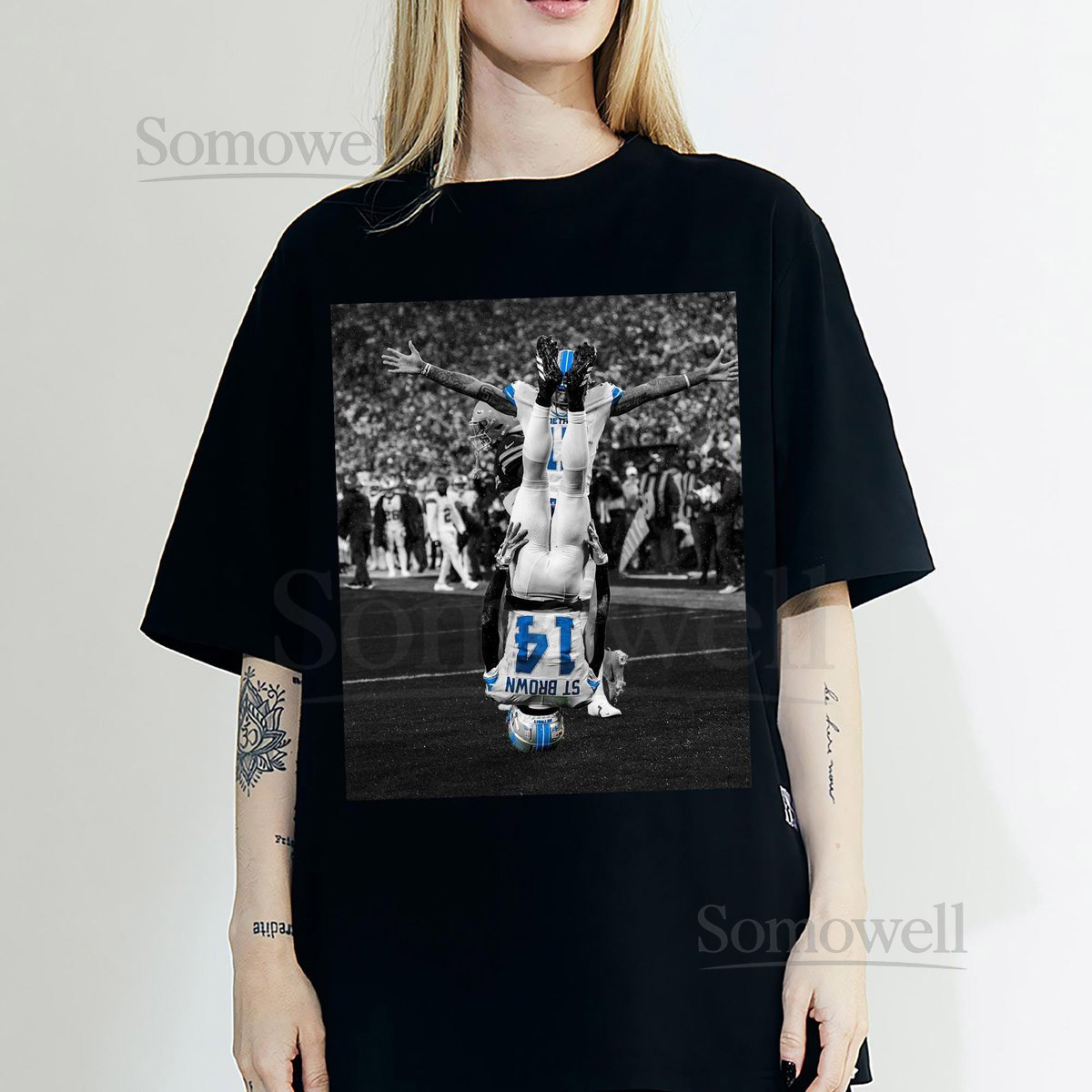 Amon-Ra St Brown Celebration Cotton Tee Shirt Unisex Heavy Cotton T-Shirt Detroit Lions Headstand Celebration_19
